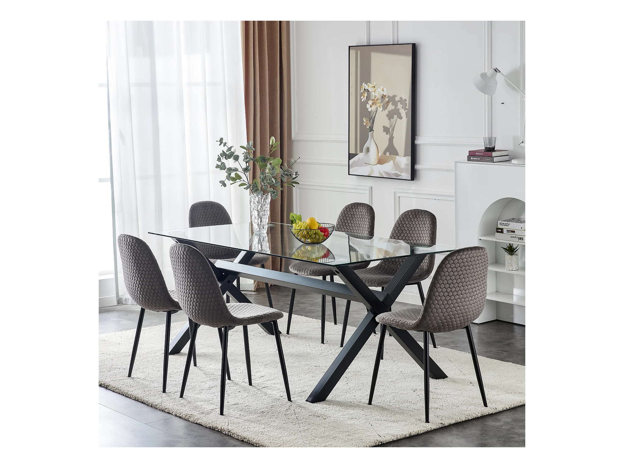 Table de Repas IXE – 150x90 cm – Verre Transparent & Structure Métal