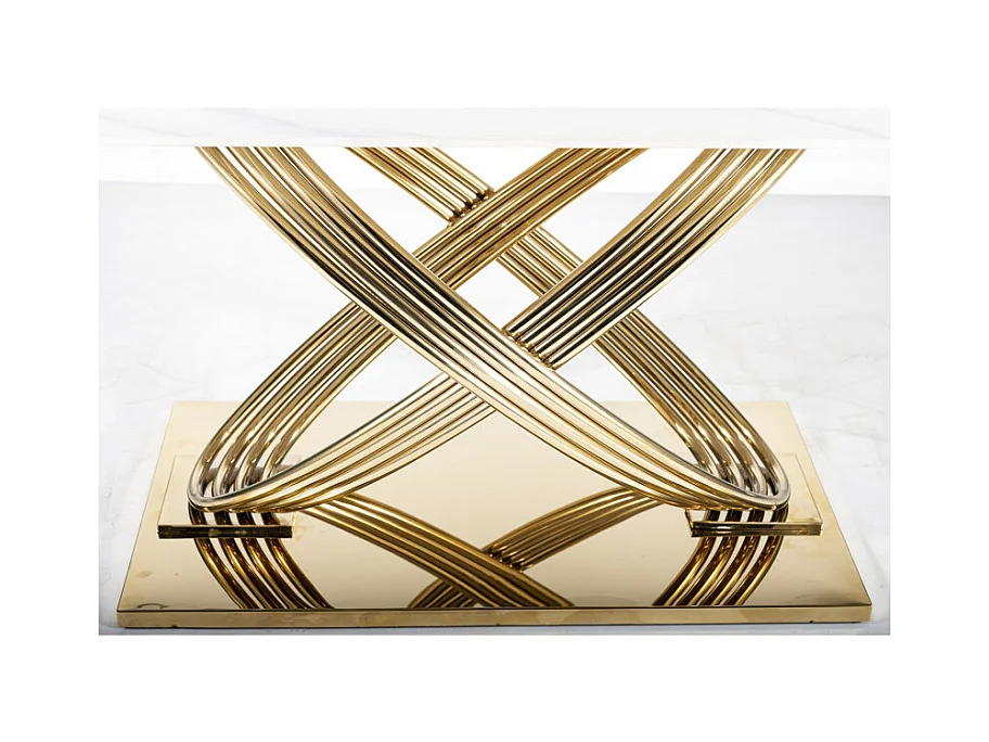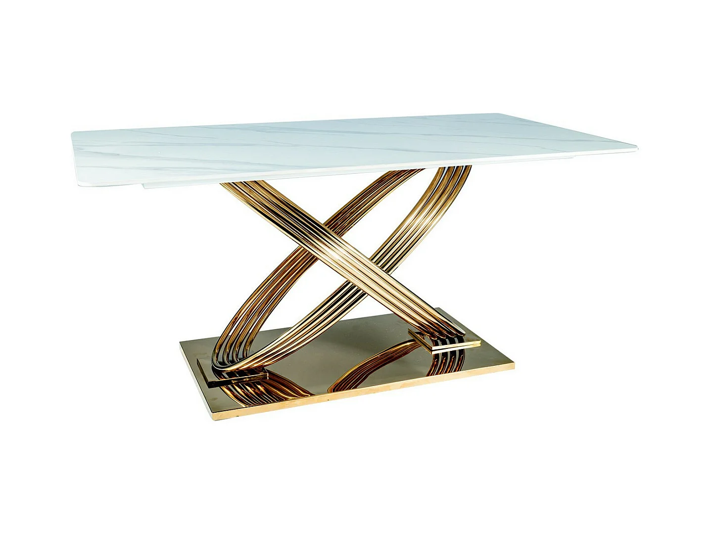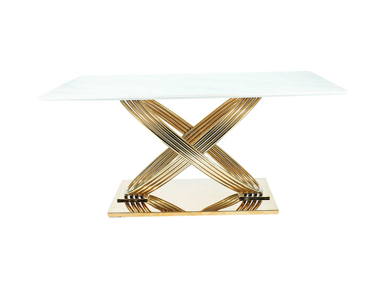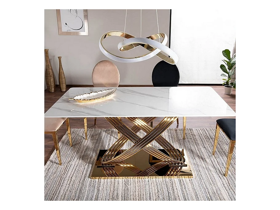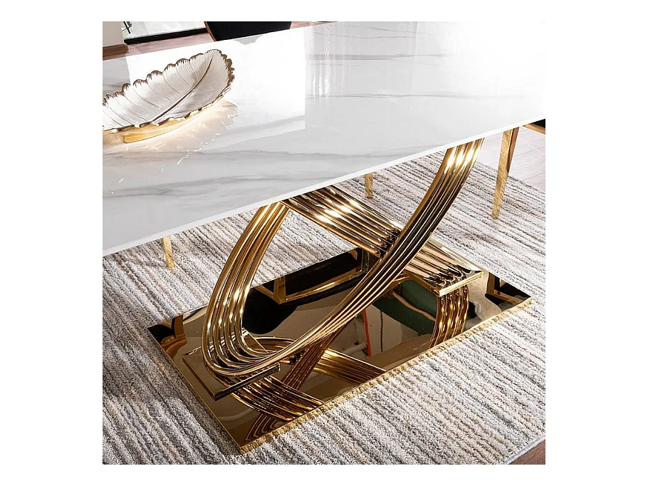 Table de salle à manger 160x90 céramique aspect marbre et pieds métal doré Domitille