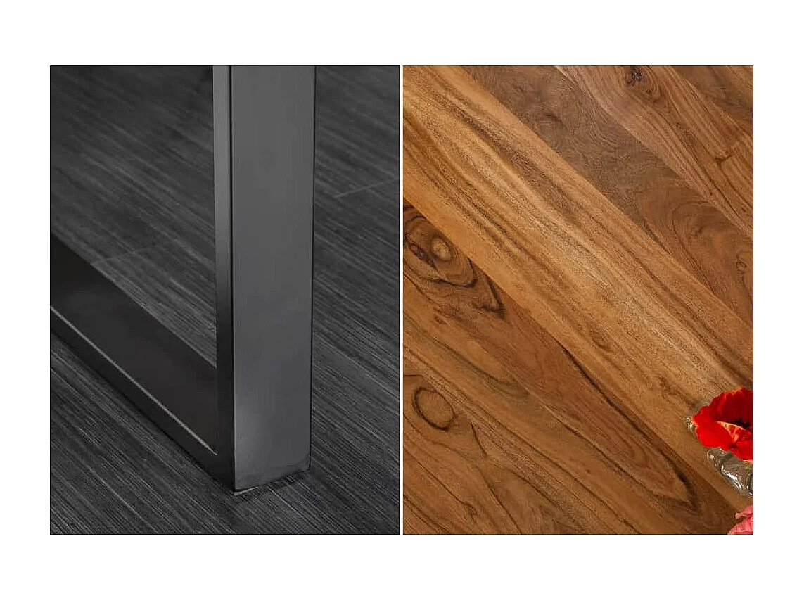 Table de salle à manger ARKAYA 180 cm – Plateau en bois d'acacia sauvage verni et pieds en métal noir en U – Style industriel