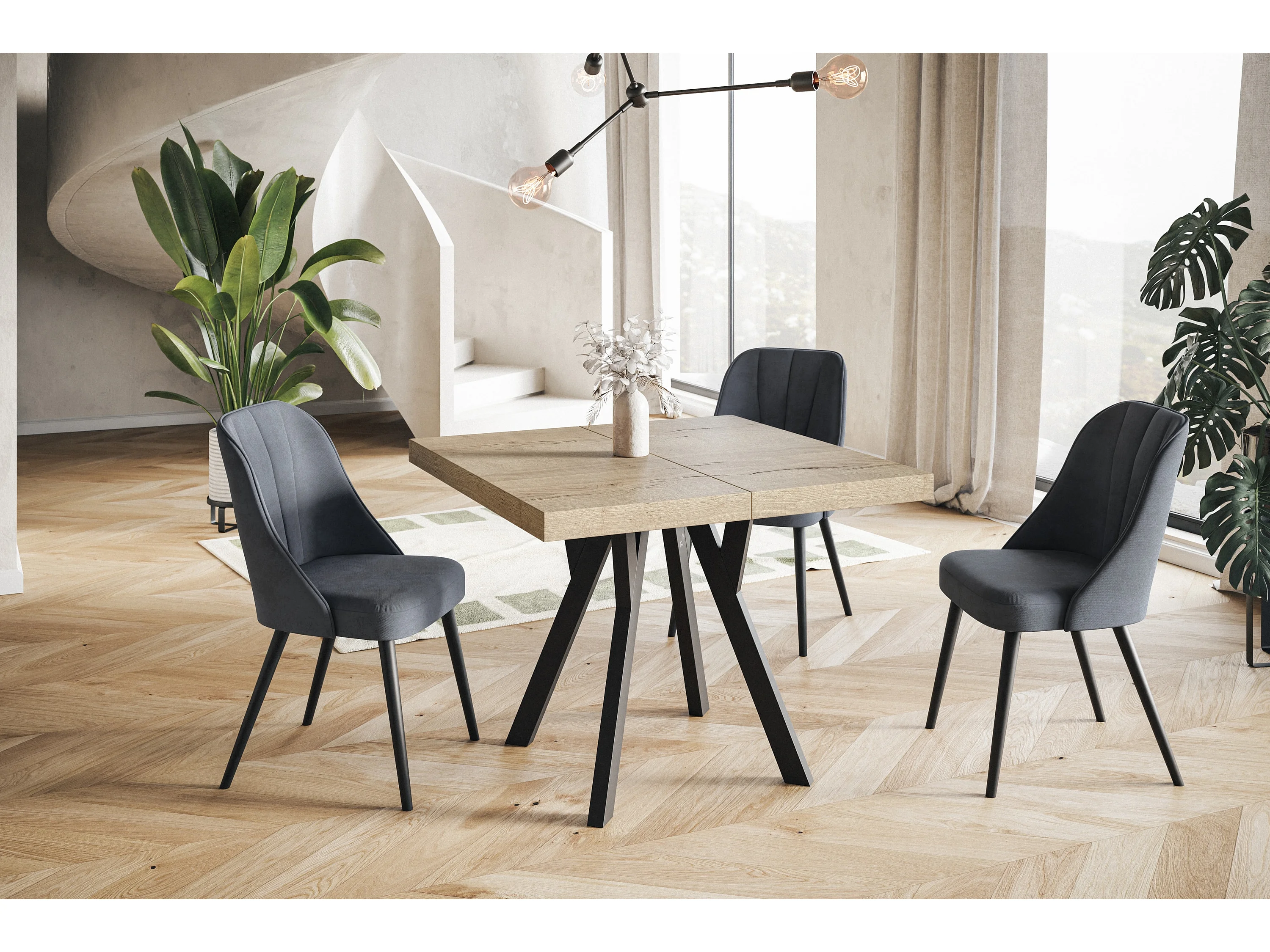 Table de salle à manger carrée RICO, table à rallonges, dimensions: 110-210X110X77 cm, couleur: HALIFAX, avec pieds en bois de couleur noire