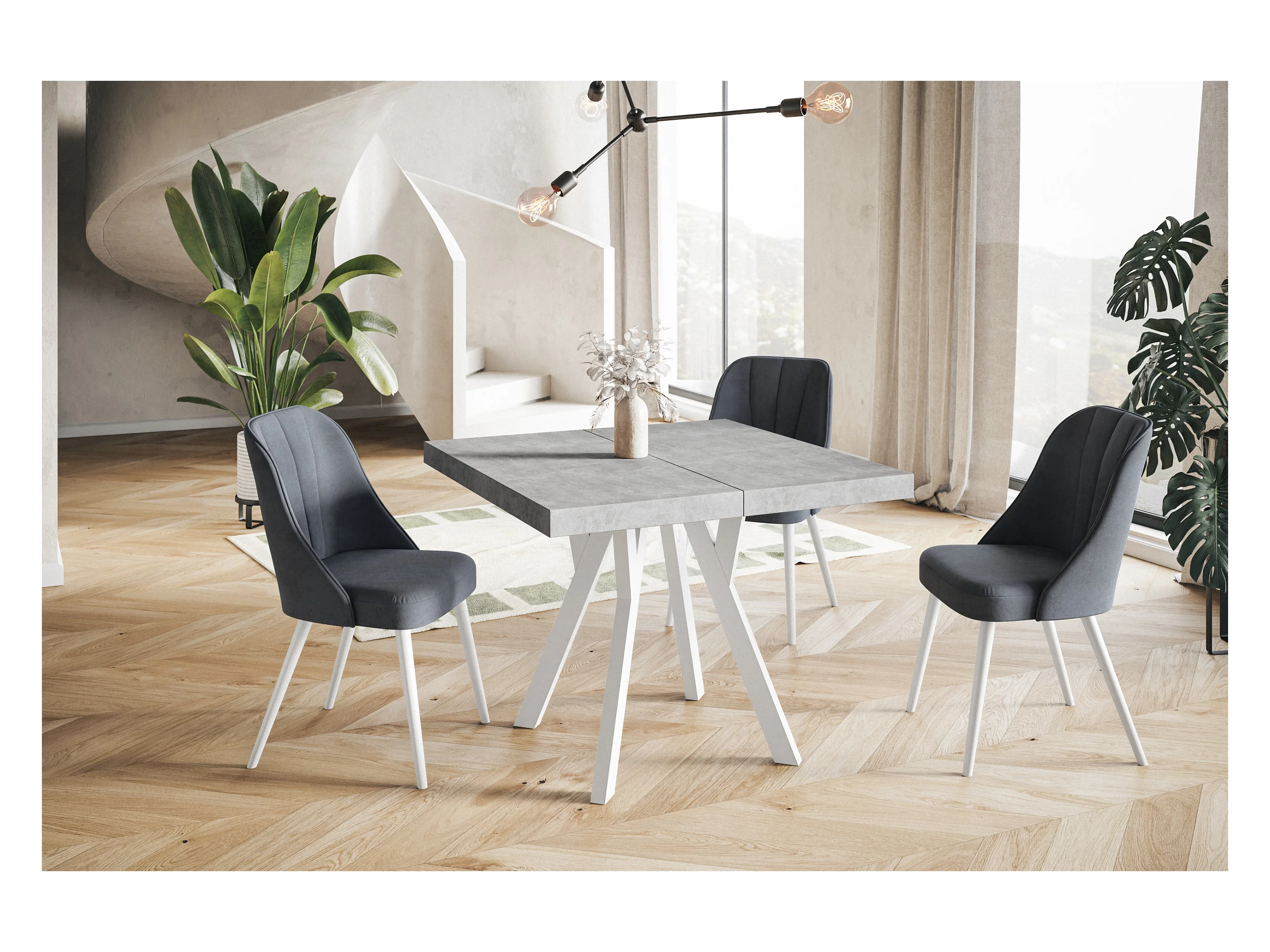 Table de salle à manger carrée RICO, table à rallonges, dimensions: 120-220X120X77 cm, couleur: graphite, avec pieds en bois de couleur blanche