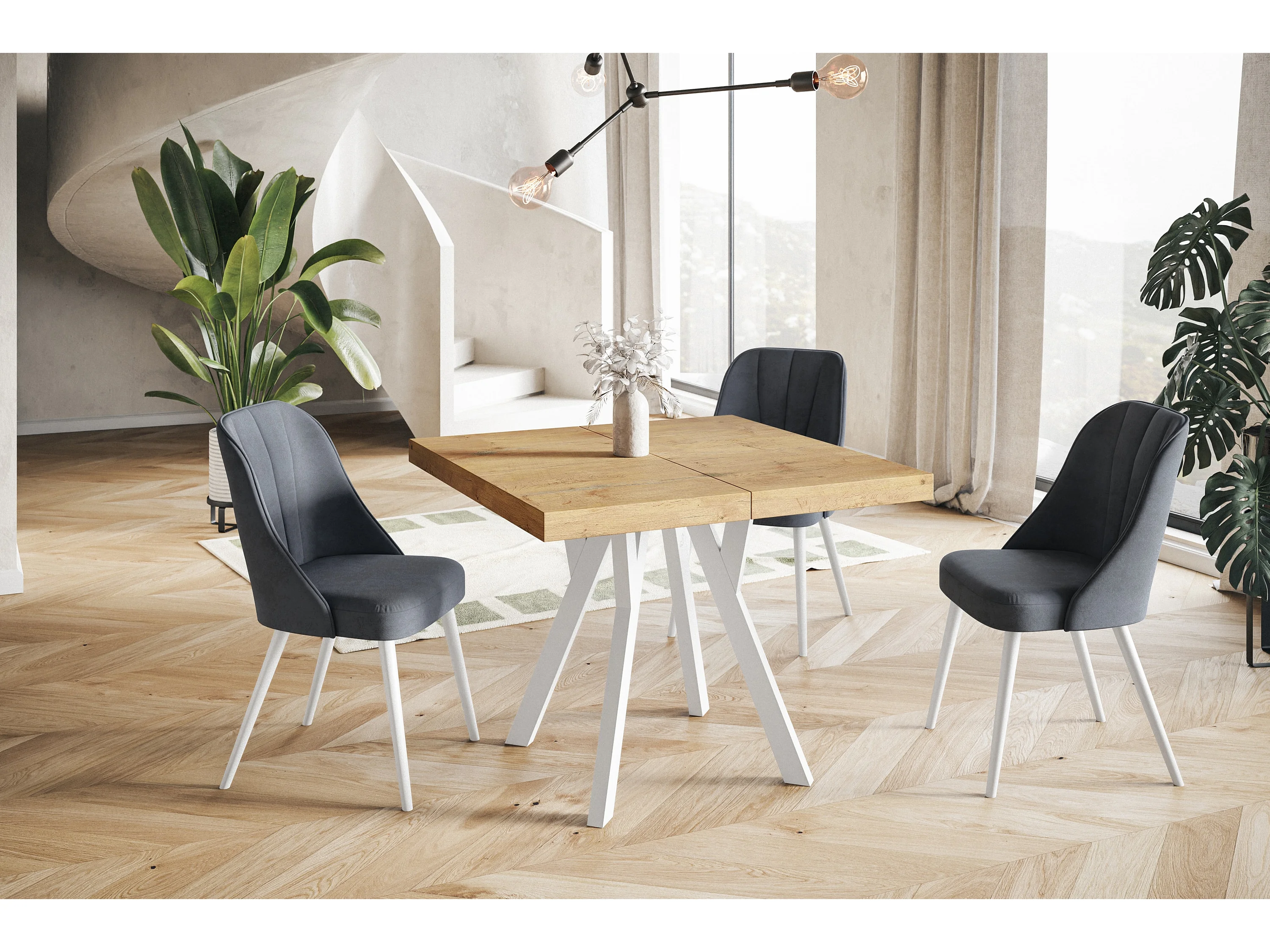 Table de salle à manger carrée RICO, table à rallonges, dimensions: 120-220X120X77 cm, couleur: LANCELOT, avec pieds en bois de couleur blanche