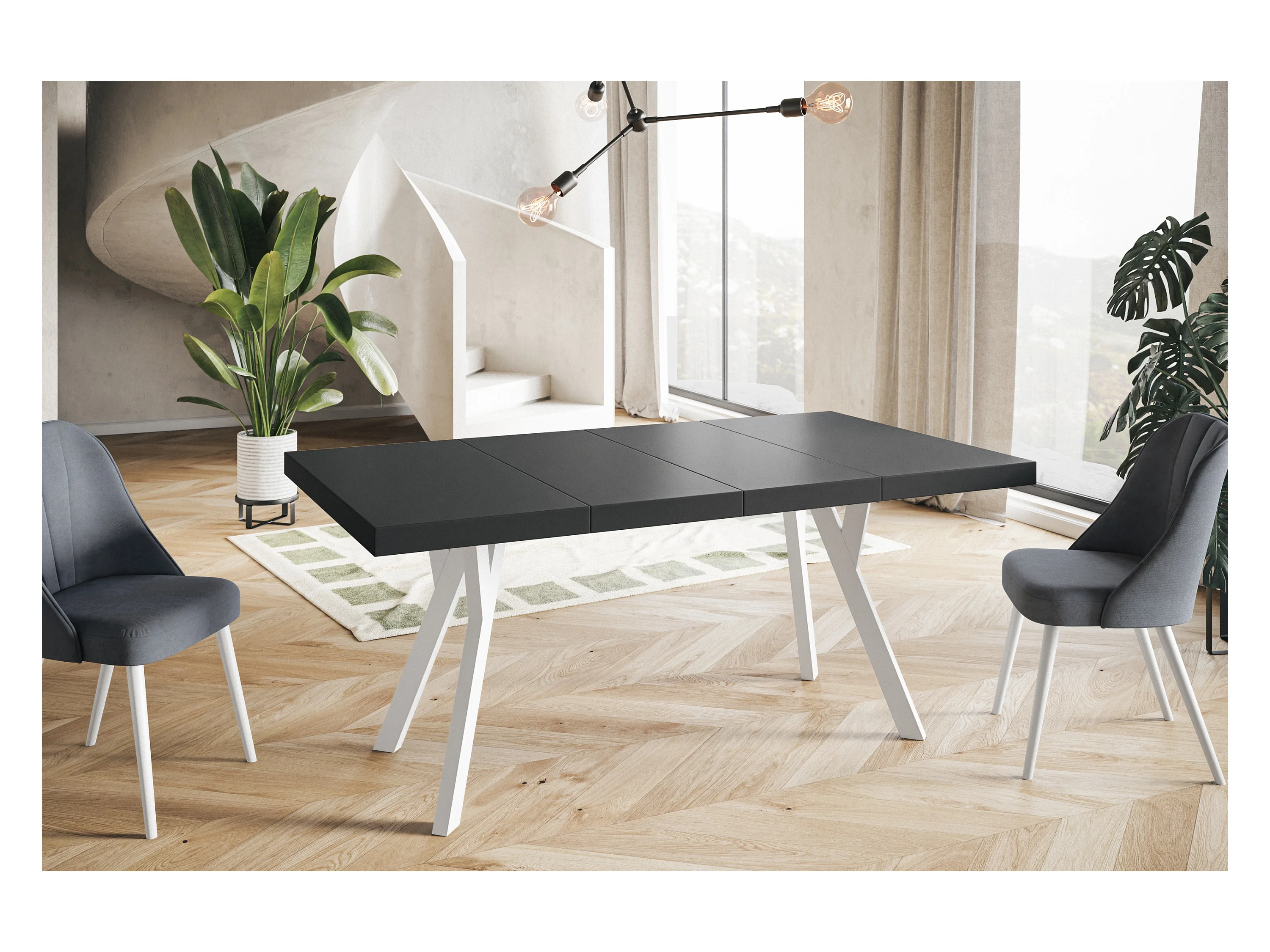 Table de salle à manger carrée RICO, table à rallonges, dimensions: 120-220X120X77 cm, couleur: noir, avec pieds en bois de couleur blanche