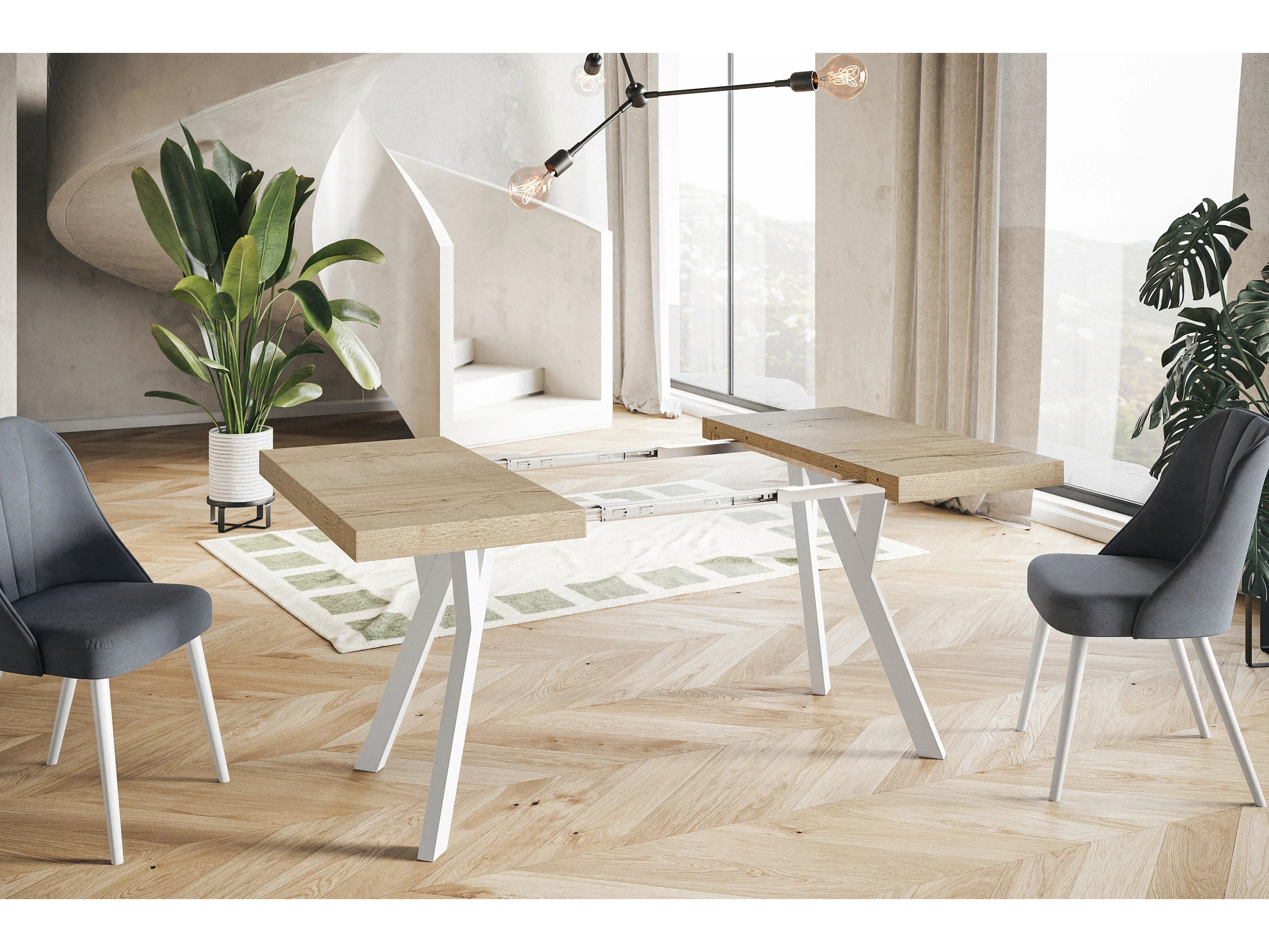 Table de salle à manger carrée RICO, table à rallonges, dimensions: 90-190X90X77 cm, couleur: HALIFAX, avec pieds en bois blanc