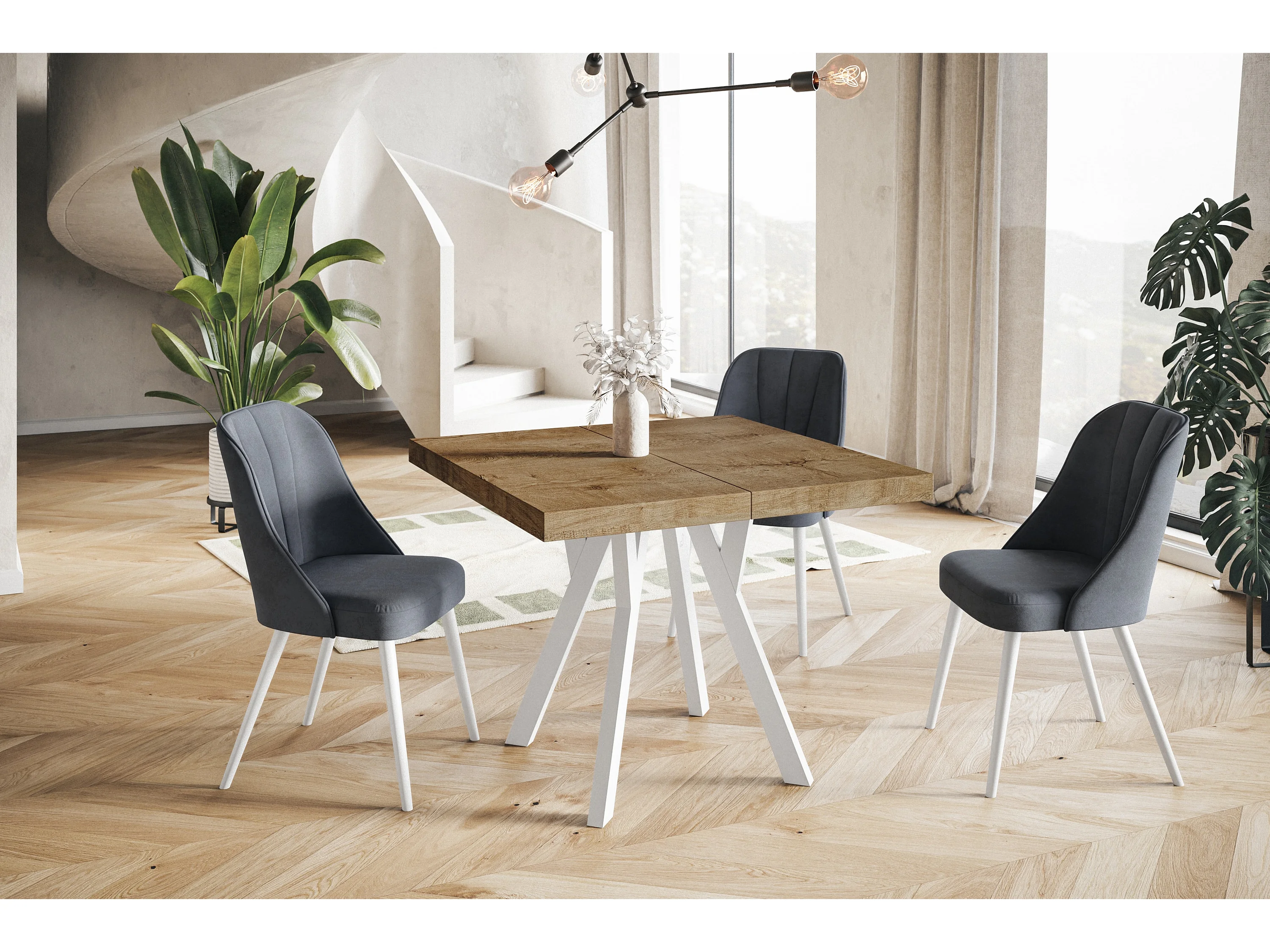Table de salle à manger carrée RICO, table à rallonges, dimensions: 90-190X90X77 cm, couleur: LEFAKS, avec pieds en bois blanc