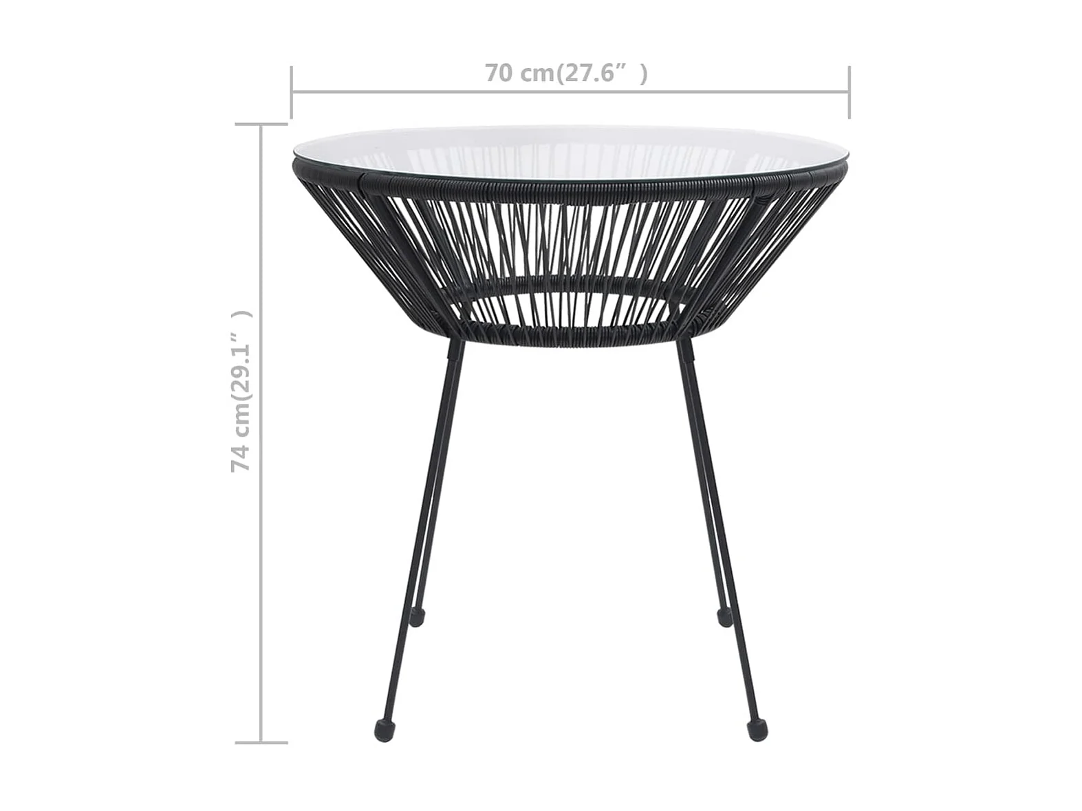 Table de salle à manger de jardin Noir Ø70x74 cm Rotin et verre GHR16818