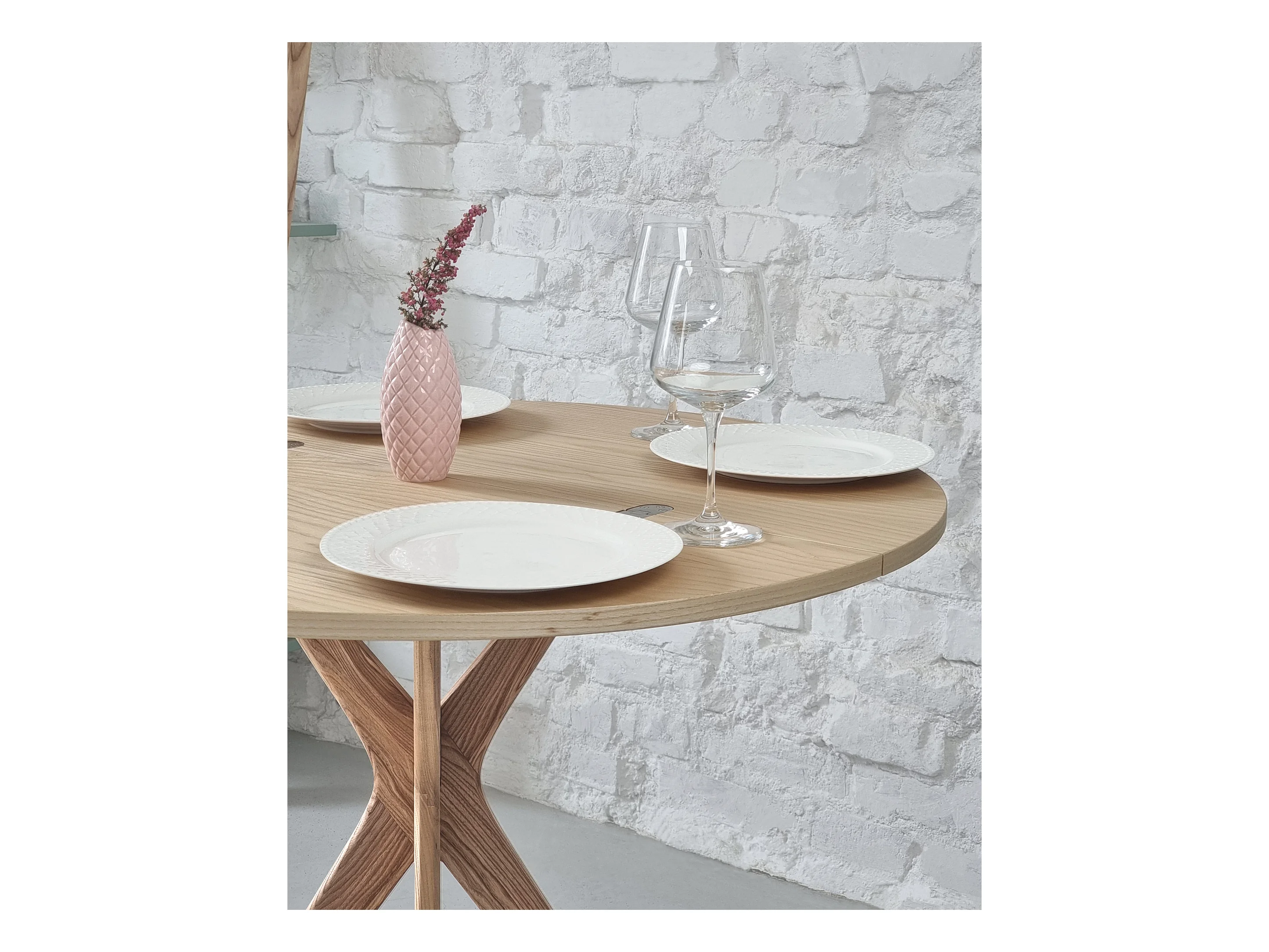 Table de salle à manger demi-ronde extensible 100 cm Jubi chêne