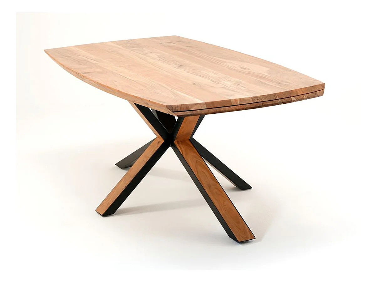 Table de salle à manger en bois d'acacia massif coloris naturel et métal laqué noir mat - longueur 180 x hauteur 77 x profondeur 100 cm
