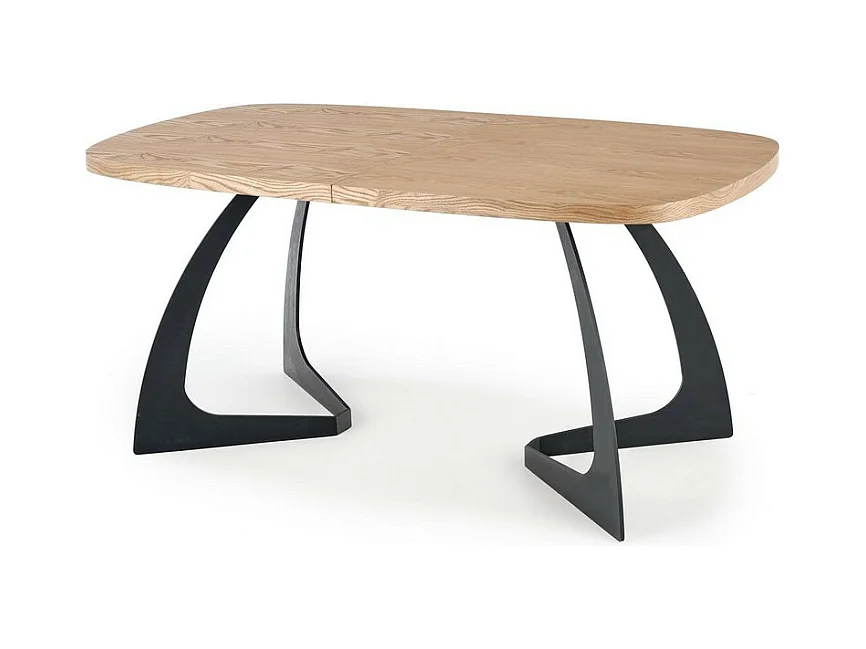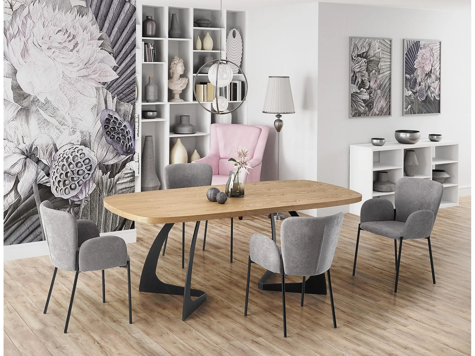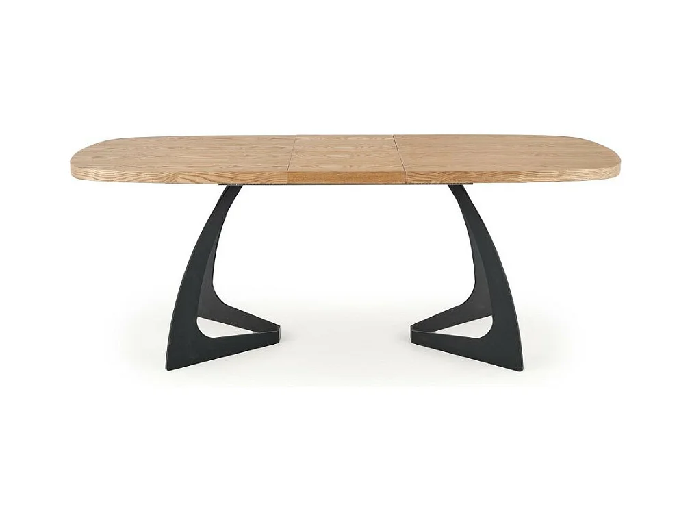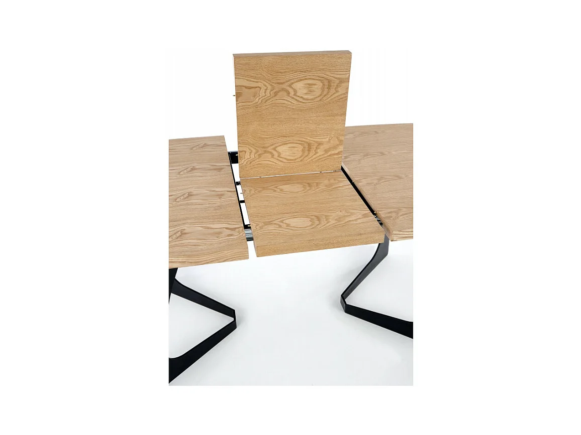 Table de salle à manger extensible aspect chêne avec pieds design en métal noir CYBELE