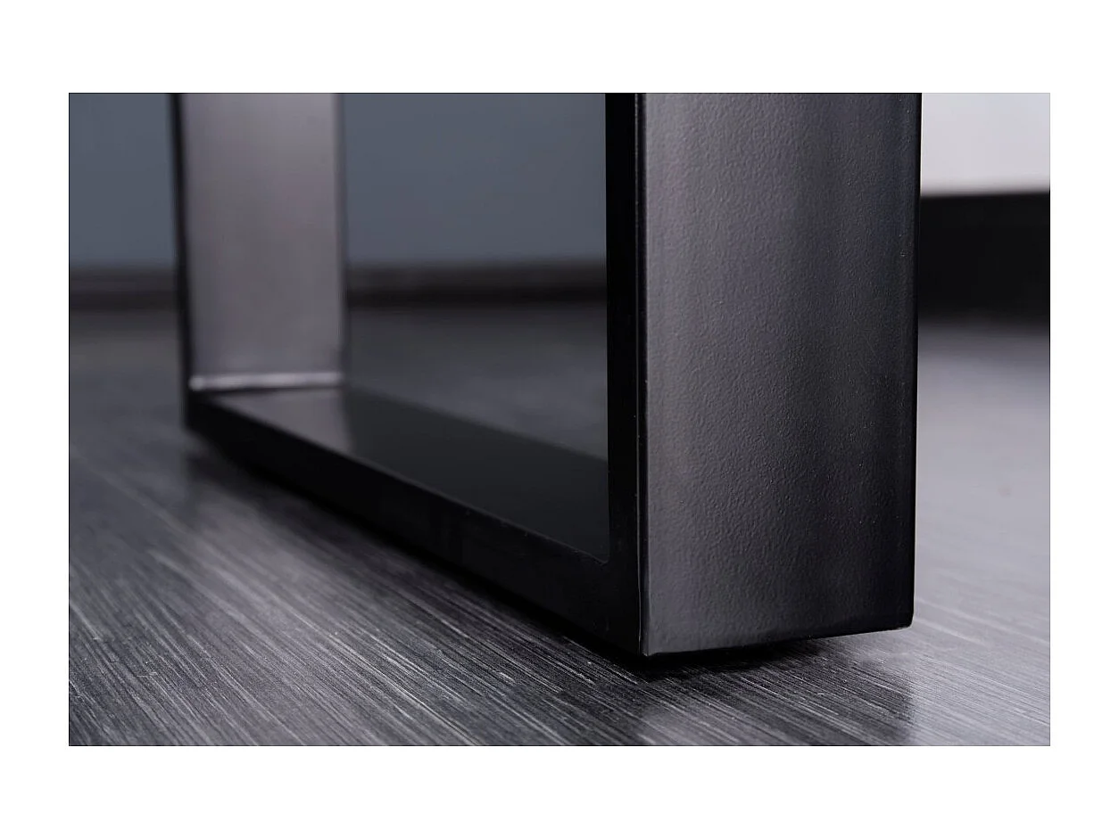 Table de salle à manger LODEN 200 cm – Plateau en bois massif de sheesham verni – Pieds en U en métal noir