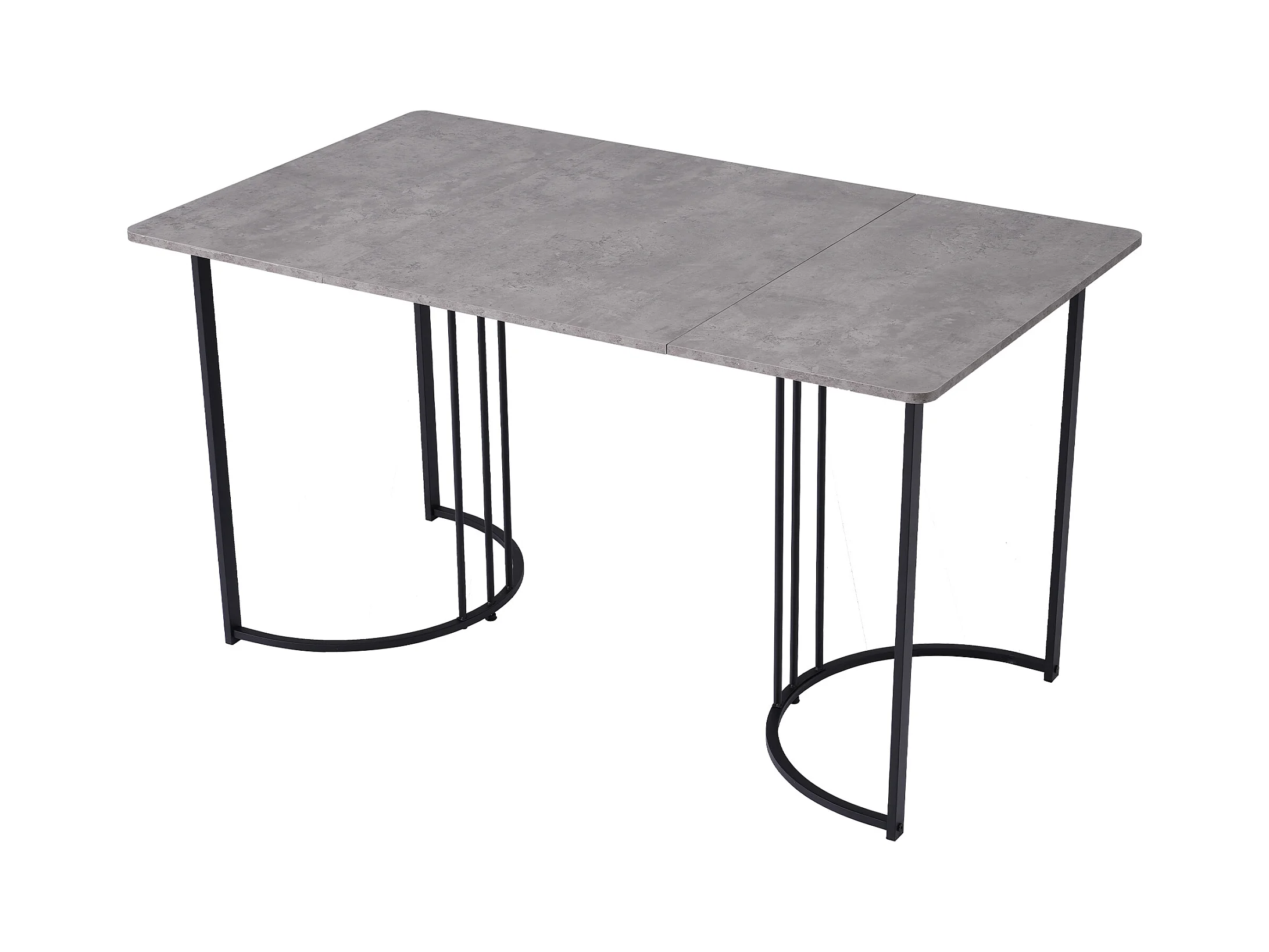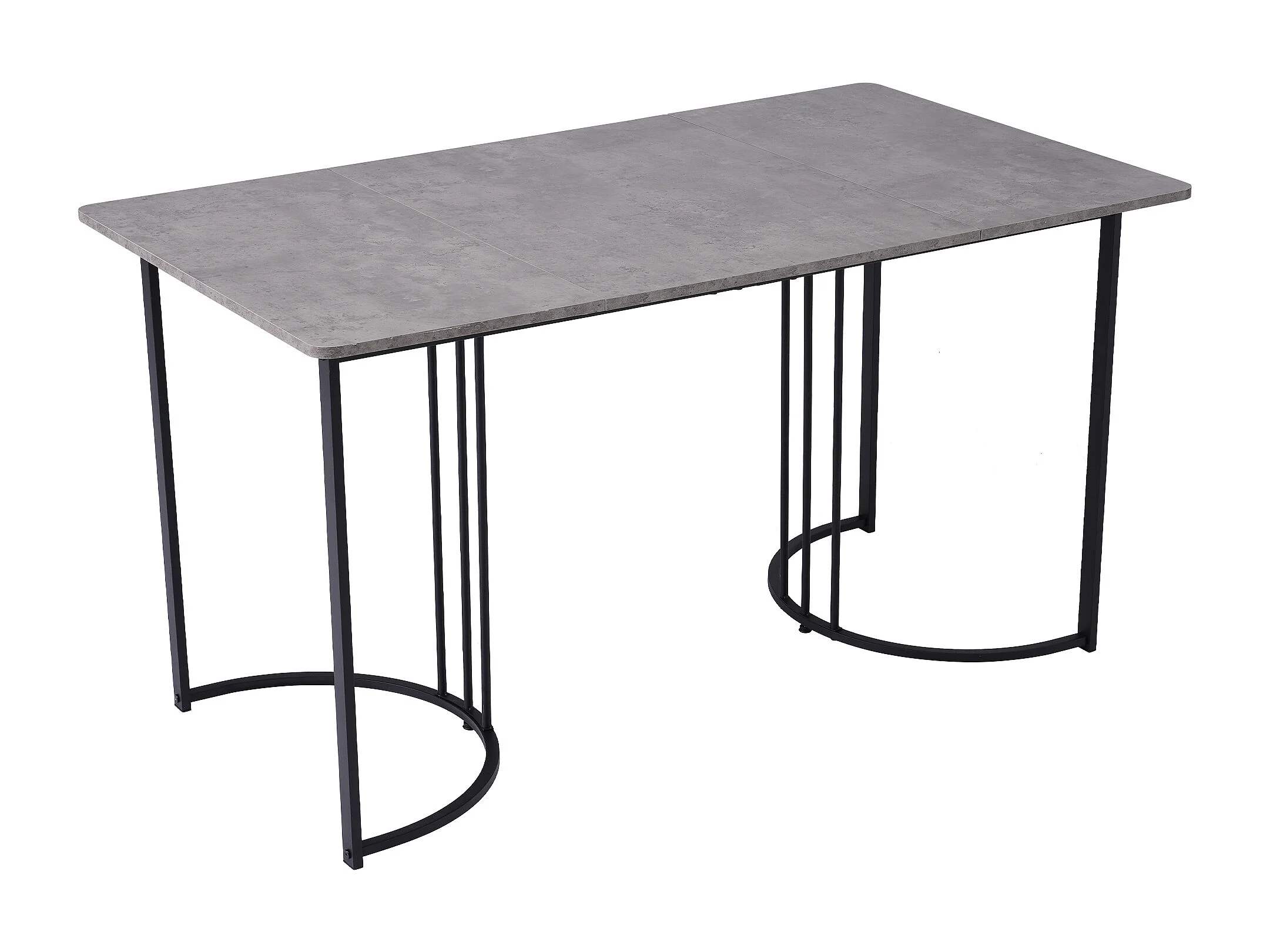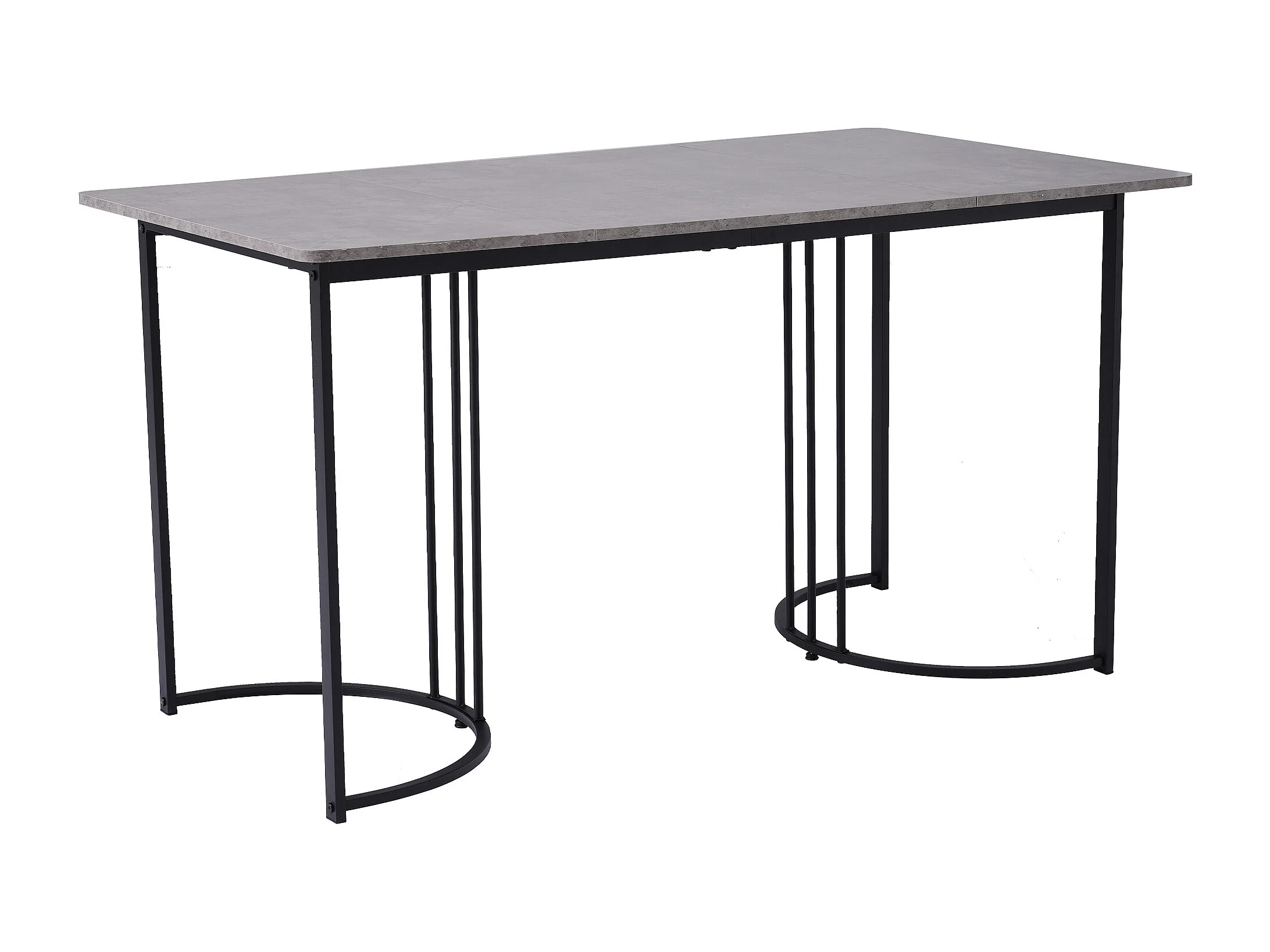 Table de salle à manger moderne 140x80cm, en MDF blanc avec pieds métalliques noirs, surface en marbre (140x80x75 cm)