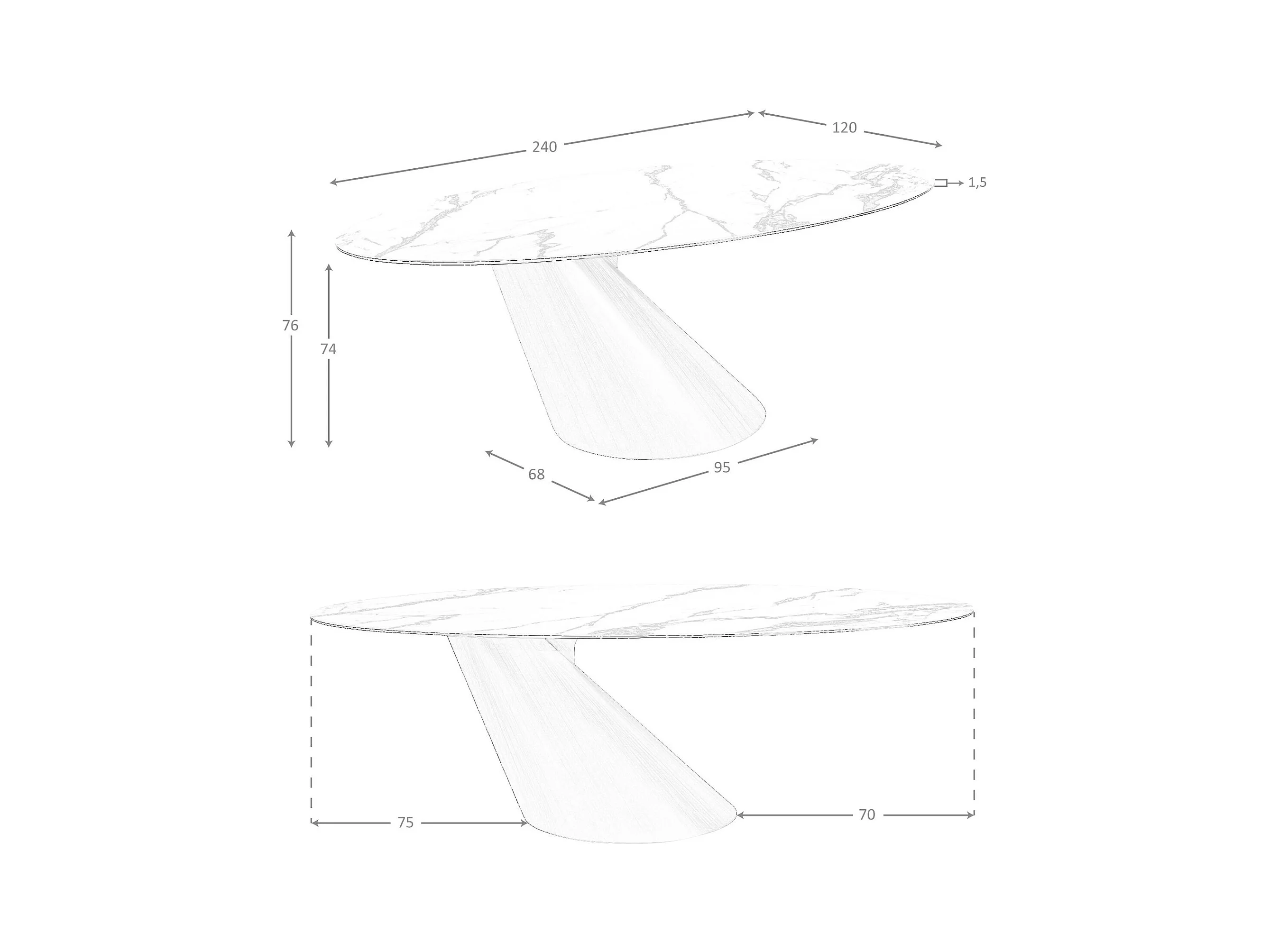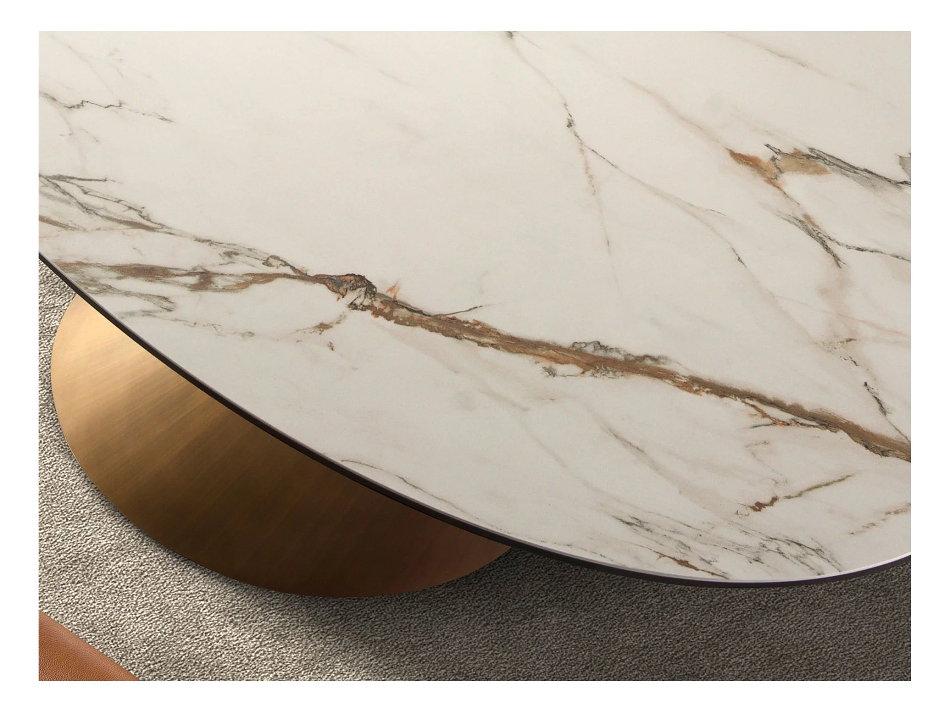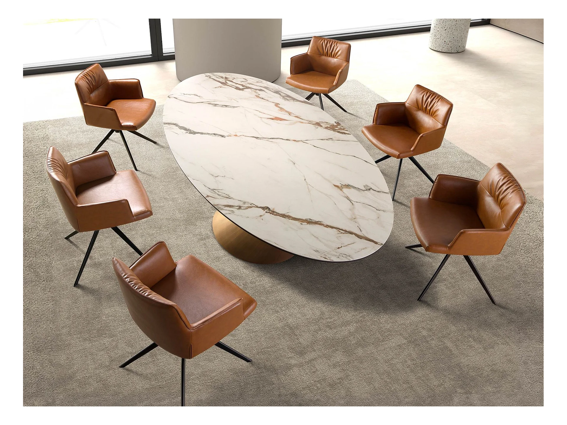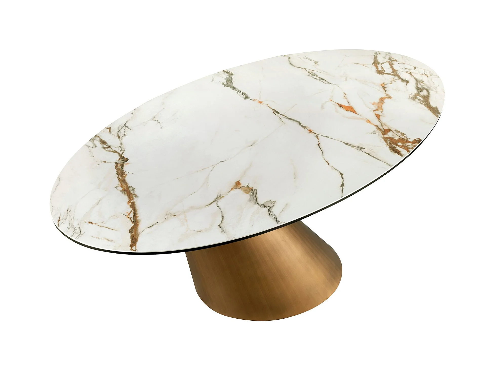 Table de salle à manger ovale en marbre de porcelaine et tonneau en acier couleur bronze 1160 ANGEL CERDA