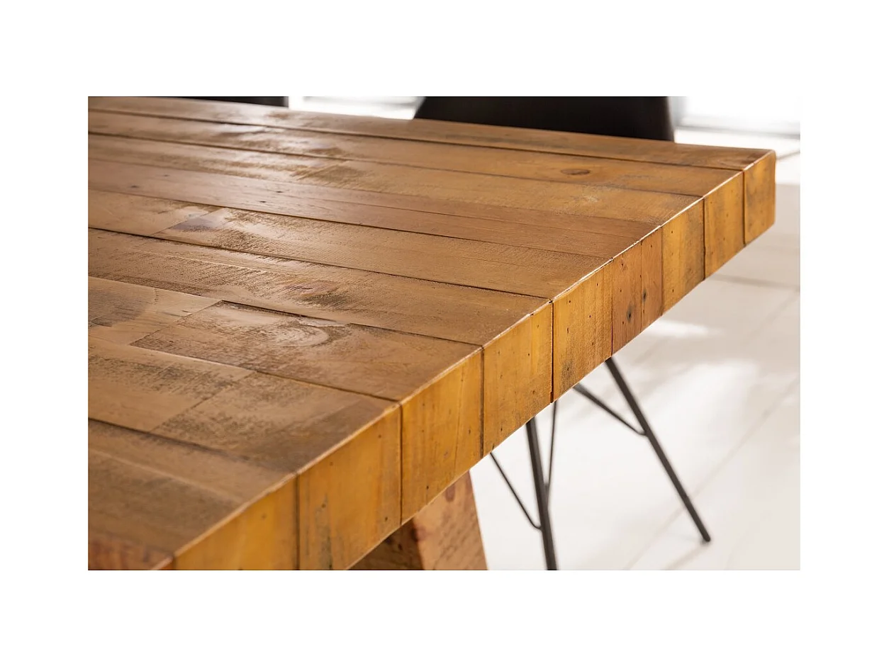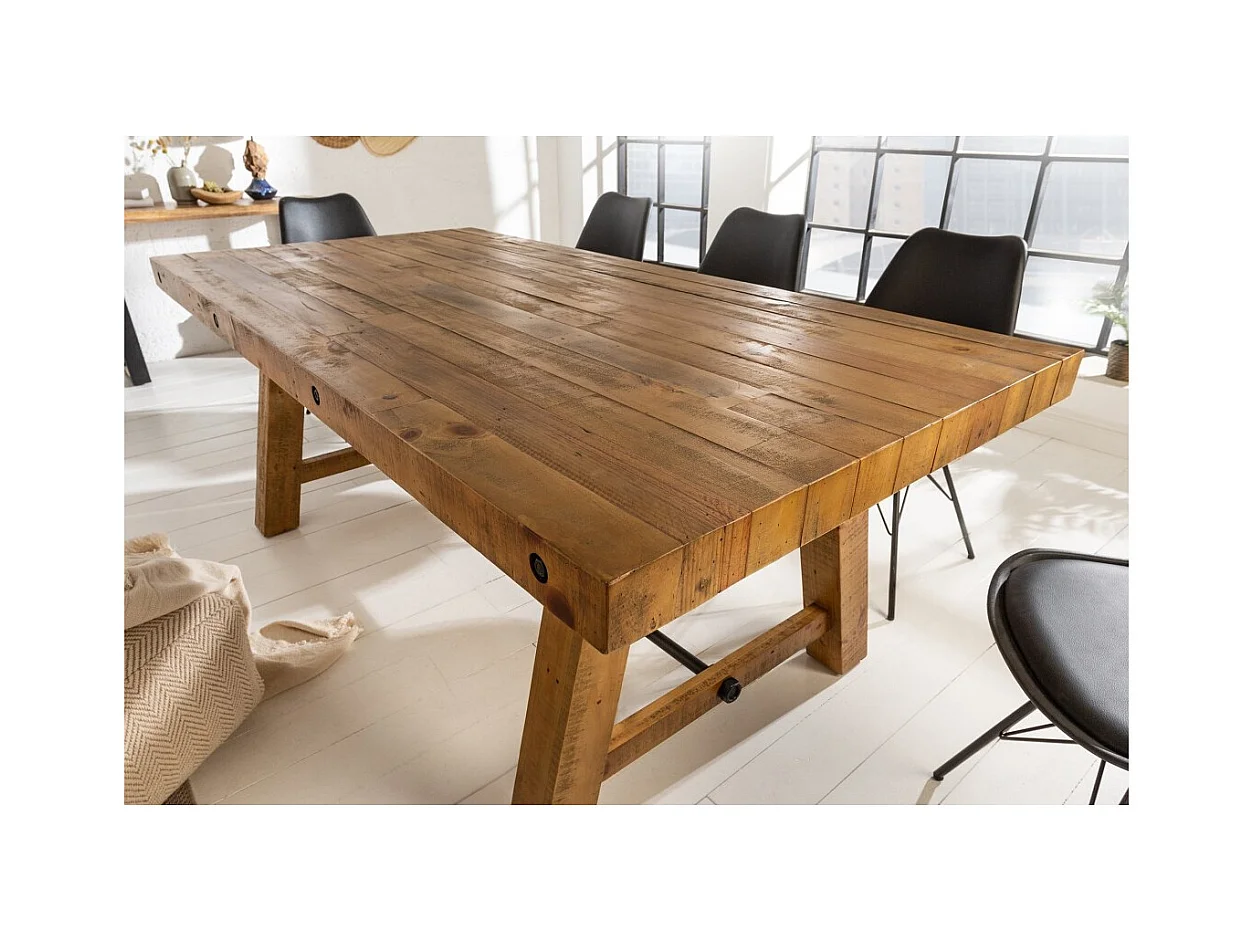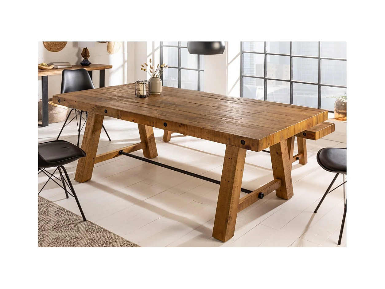 Table de salle à manger RANCHO 165 cm – Plateau en bois de pin recyclé verni – Style rustique et chaleureux