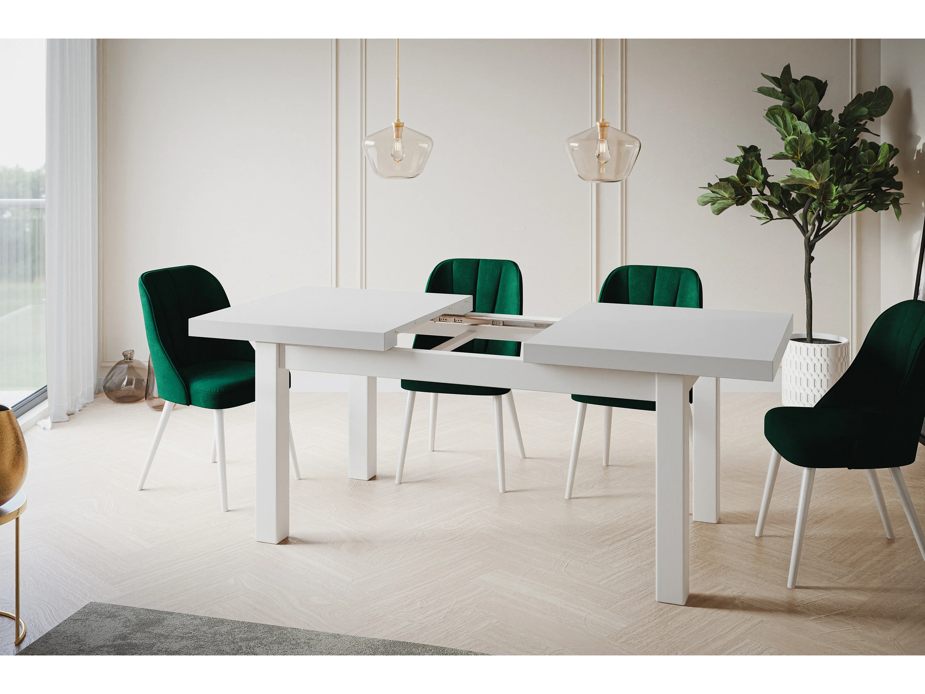 Table de salle à manger rectangulaire CLASSIC, table extensible, dimensions : 120-160X80X78 cm, couleur : blanc, avec pieds en bois de couleur blanche
