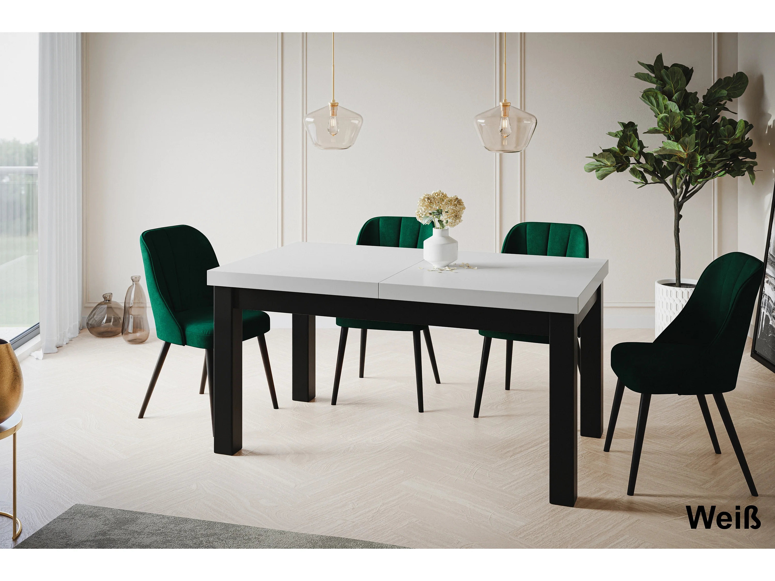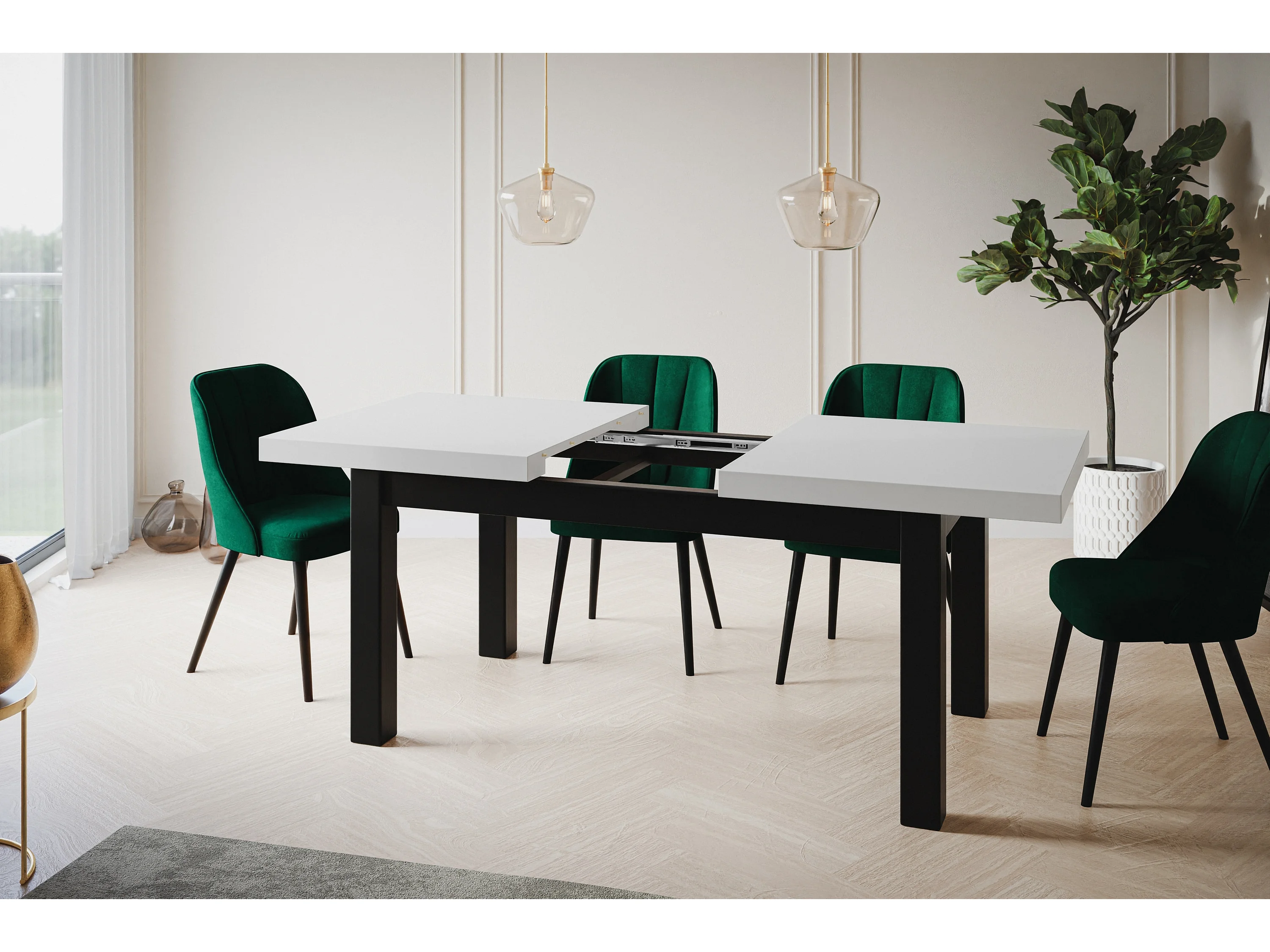 Table de salle à manger rectangulaire CLASSIC, table extensible, dimensions : 120-160X80X78 cm, couleur : blanc, avec pieds en bois de couleur noire