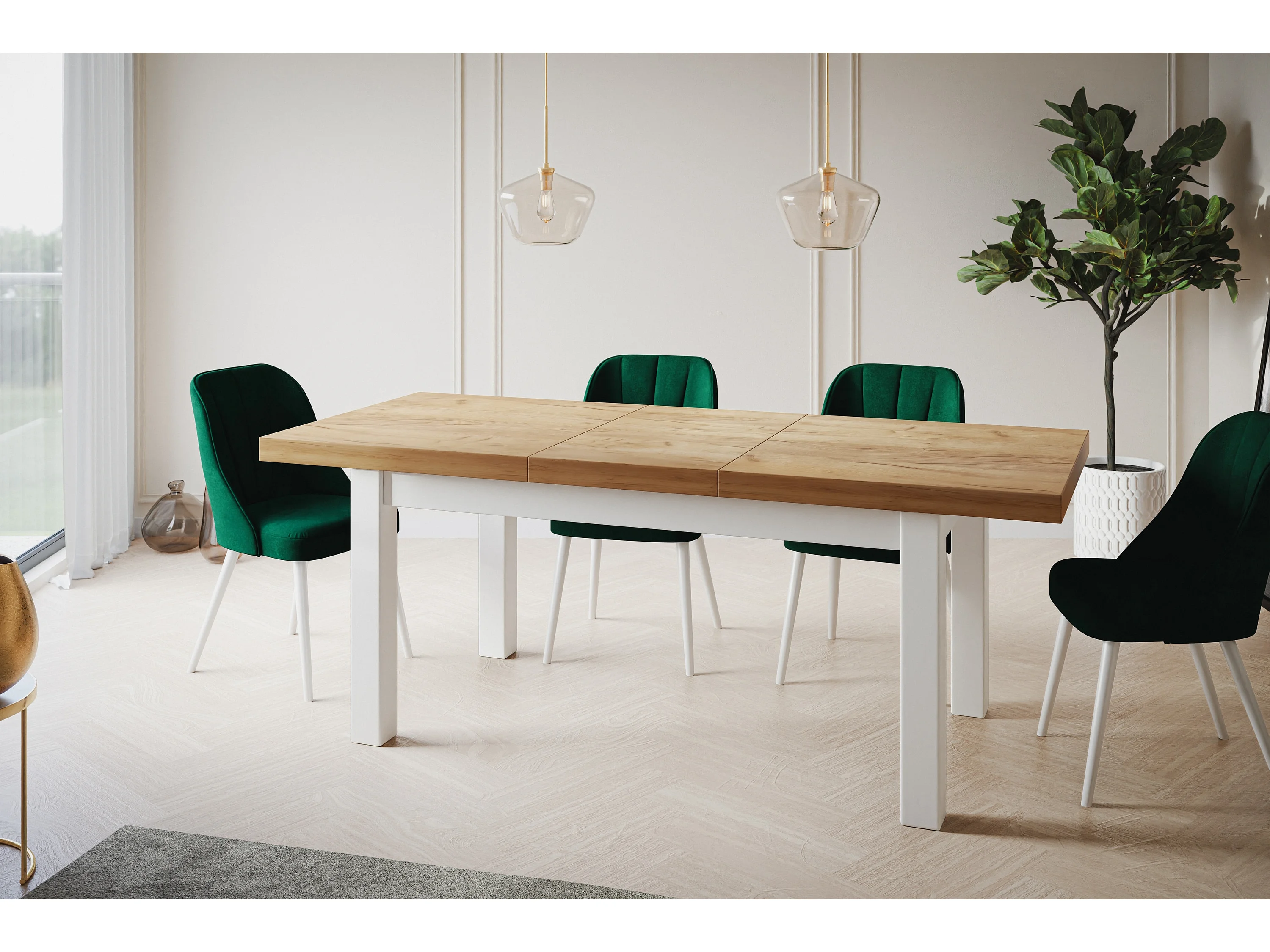 Table de salle à manger rectangulaire CLASSIC, table extensible, dimensions : 120-160X80X78 cm, couleur : CRAFT, avec pieds en bois de couleur blanche