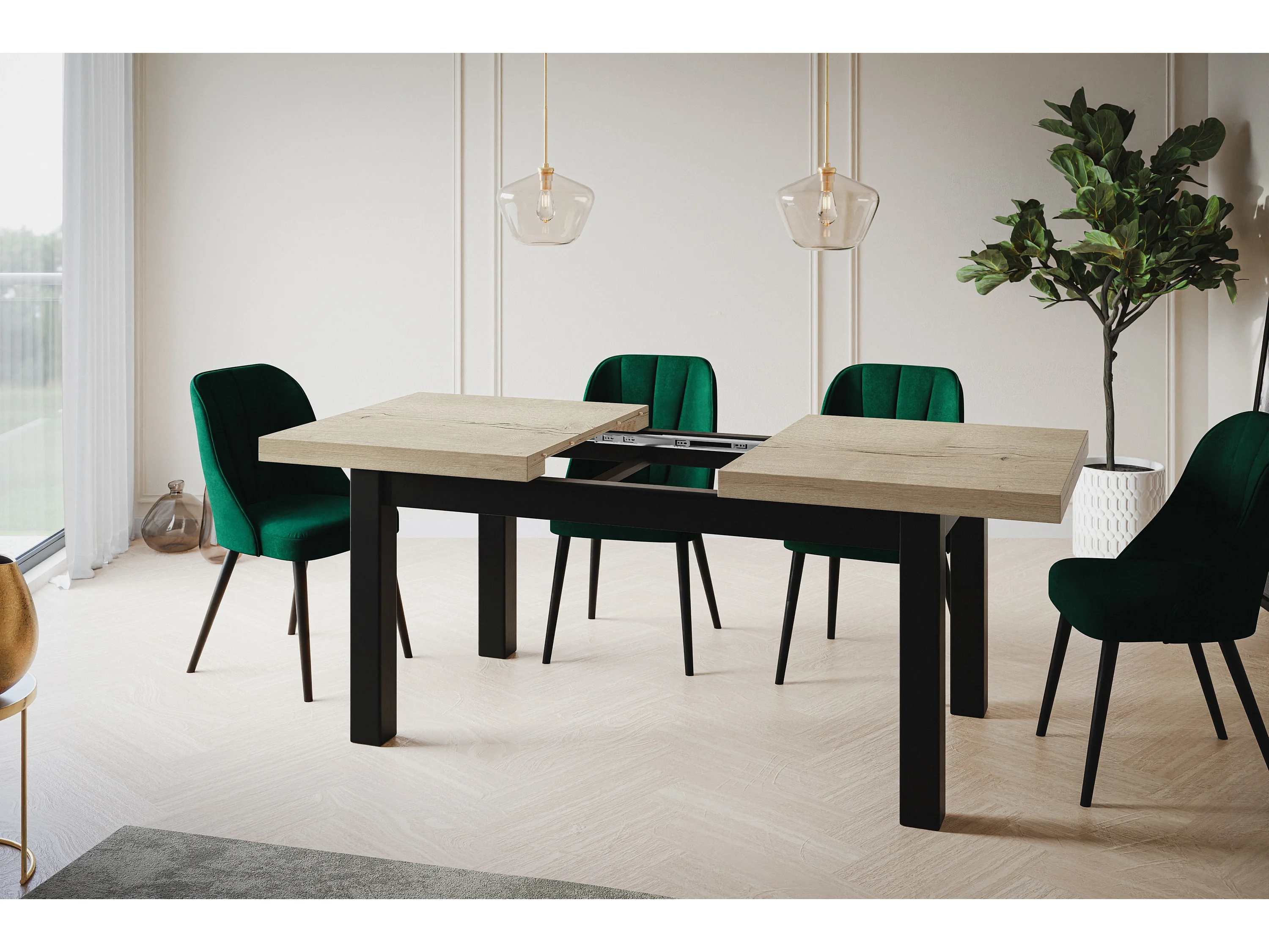 Table de salle à manger rectangulaire CLASSIC, table extensible, dimensions : 120-160X80X78 cm, couleur : HALIFAX, avec pieds en bois de couleur noire