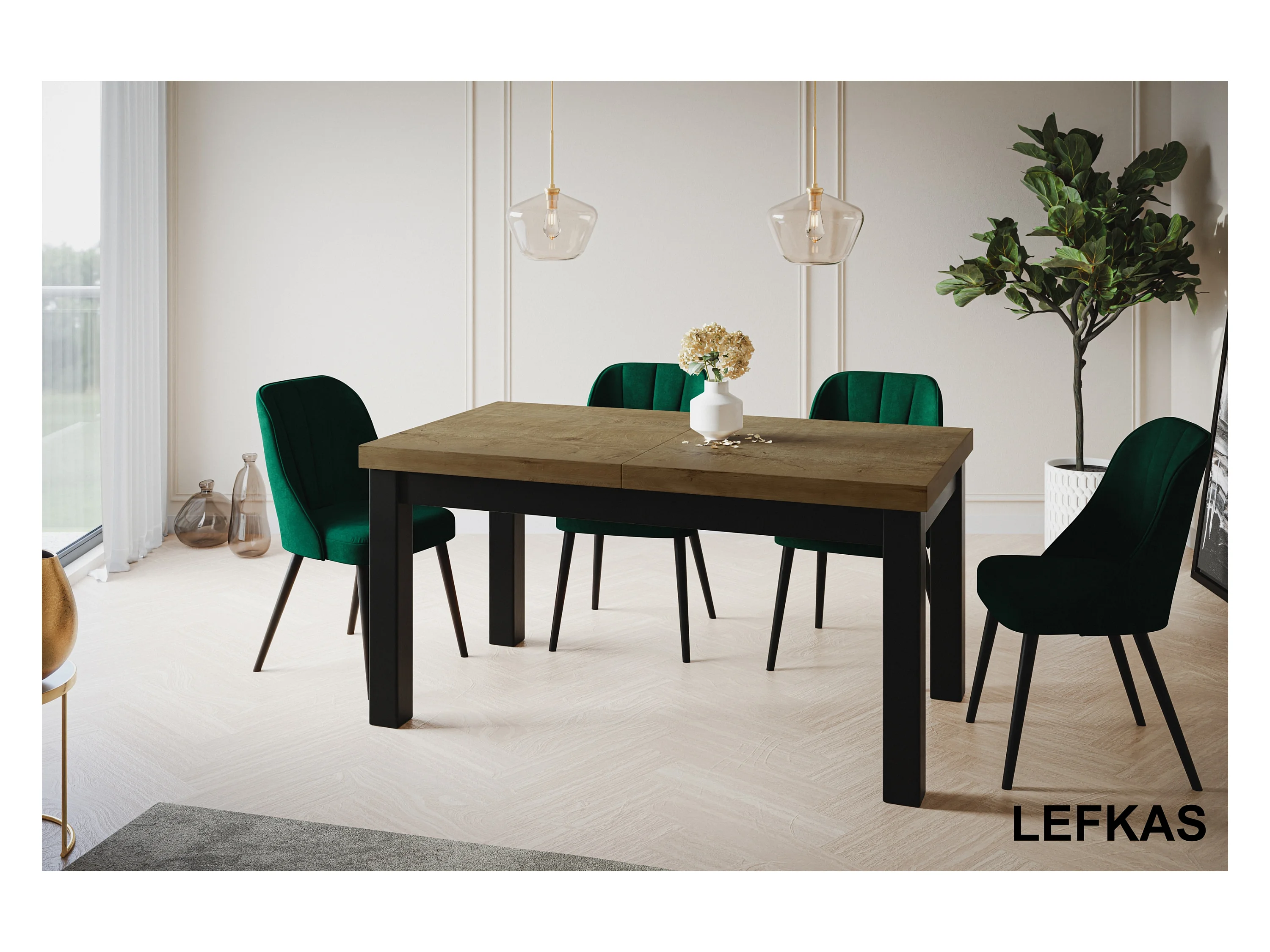 Table de salle à manger rectangulaire CLASSIC, table extensible, dimensions : 120-160X80X78 cm, couleur : LEFKAS, avec pieds en bois de couleur noire