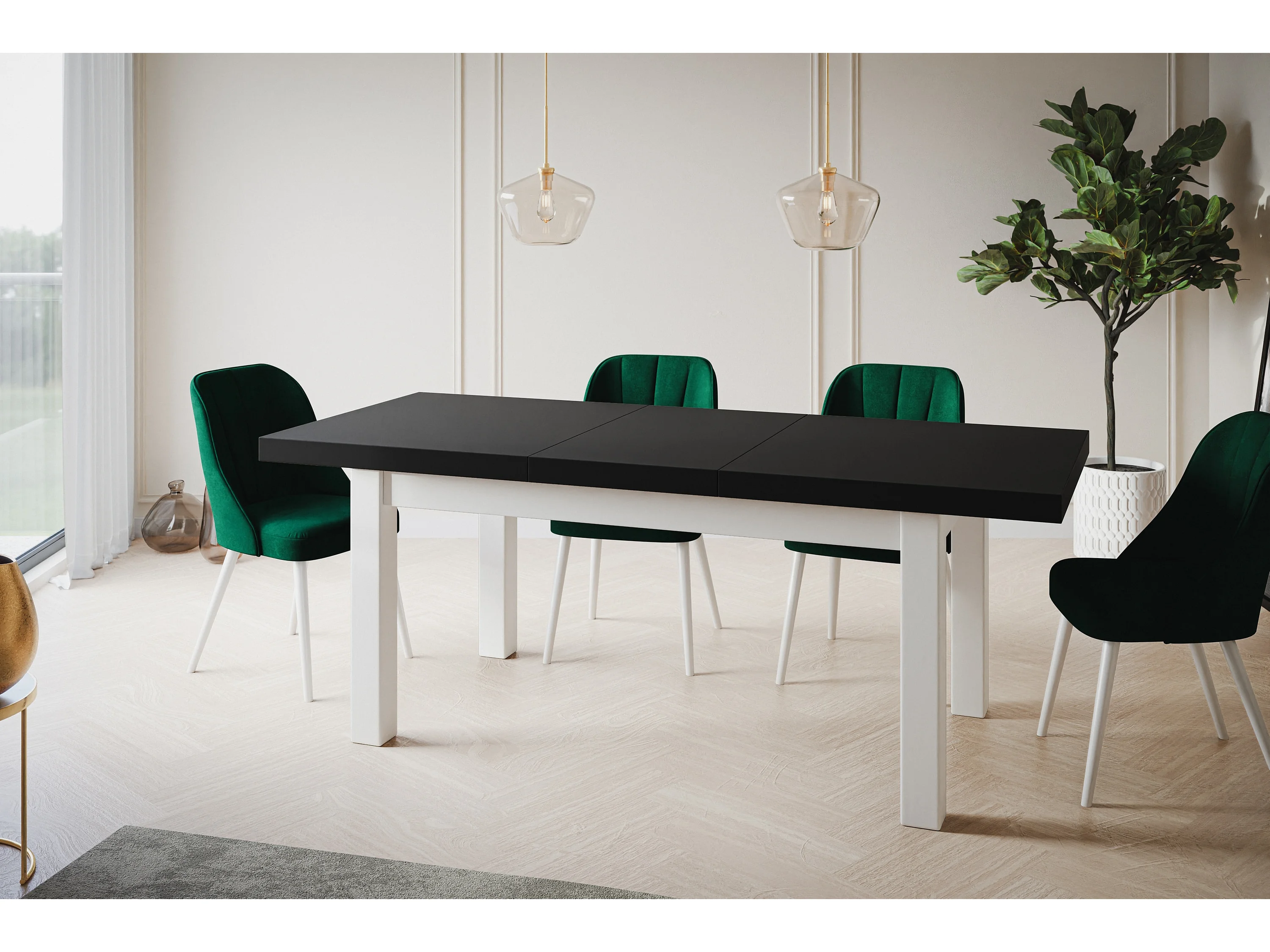Table de salle à manger rectangulaire CLASSIC, table extensible, dimensions : 120-160X80X78 cm, couleur : noir, avec pieds en bois de couleur blanche