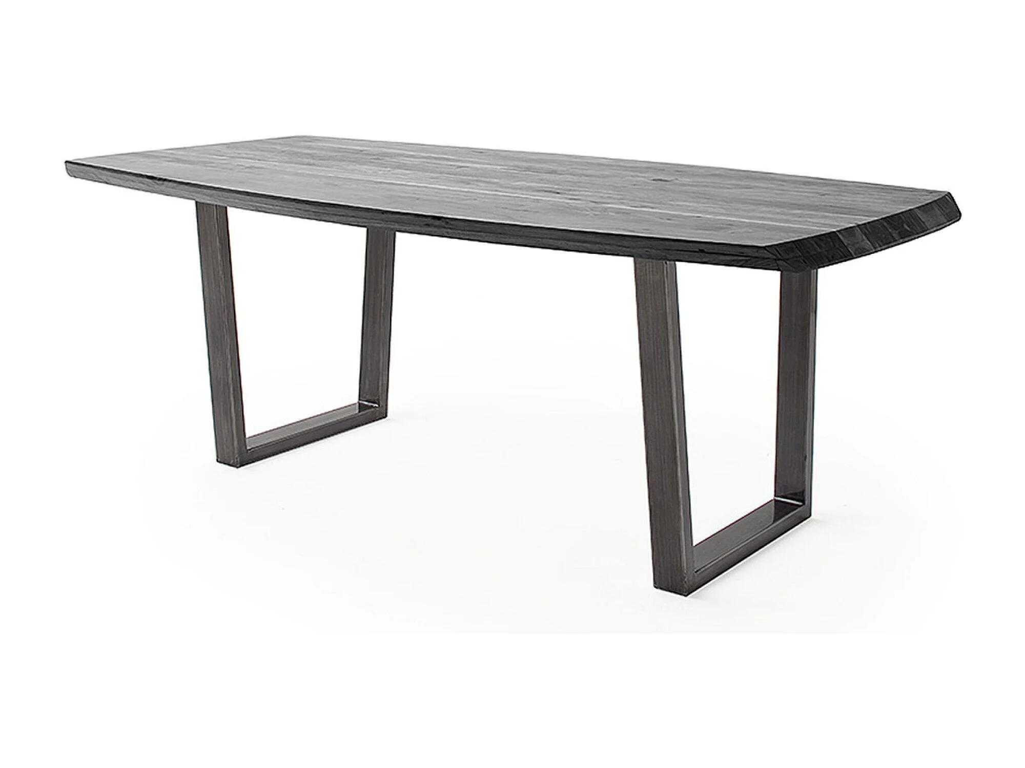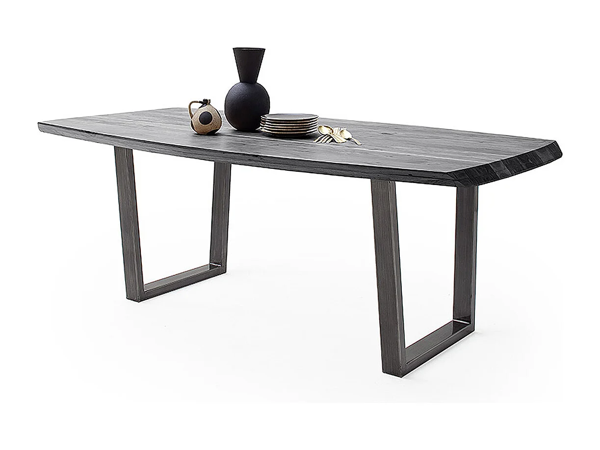Table de salle à manger rectangulaire en bois d'acacia coloris gris, pieds en métal peint coloris anthracite - longueur 180 x hauteur 77 x profondeur 100 cm
