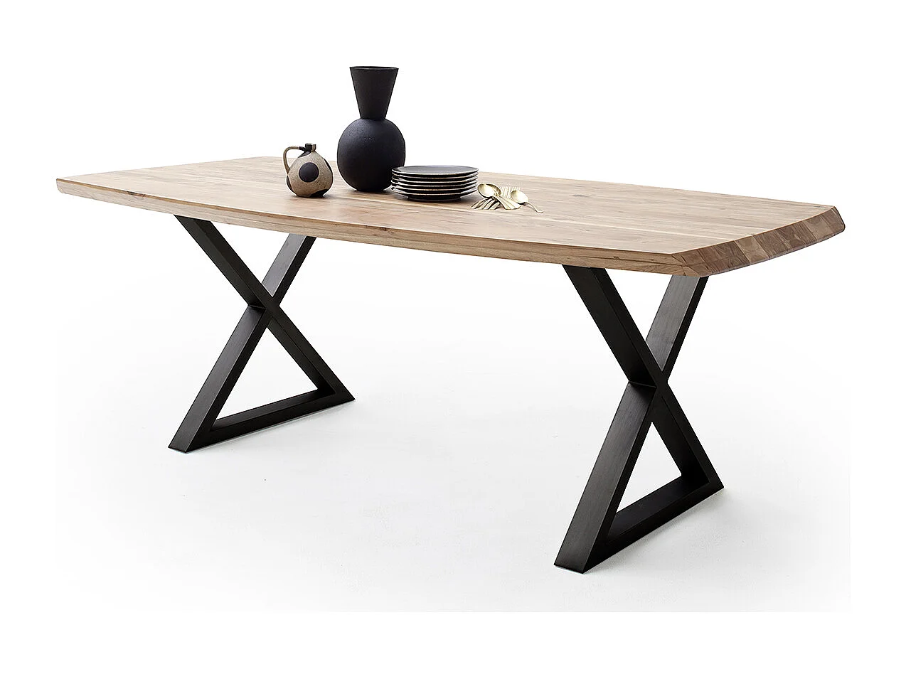 Table de salle à manger rectangulaire en bois d'acacia coloris naturel, pieds croisés en métal peint anthracite - longueur 200 x hauteur 77 x profondeur 100 cm