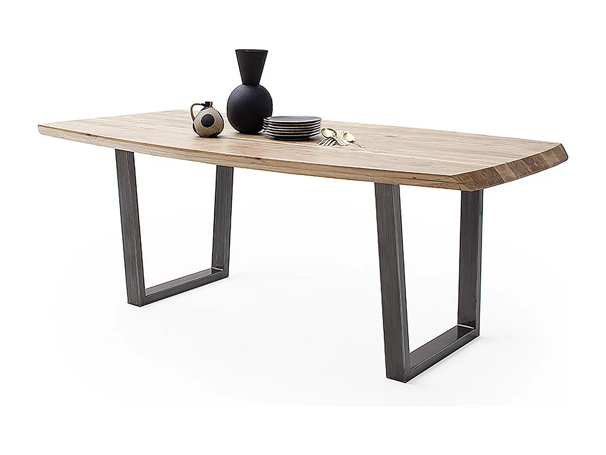 Table de salle à manger rectangulaire en bois d'acacia coloris naturel, pieds en métal anthracite antique - longueur 180 x hauteur 77 x profondeur 100 cm