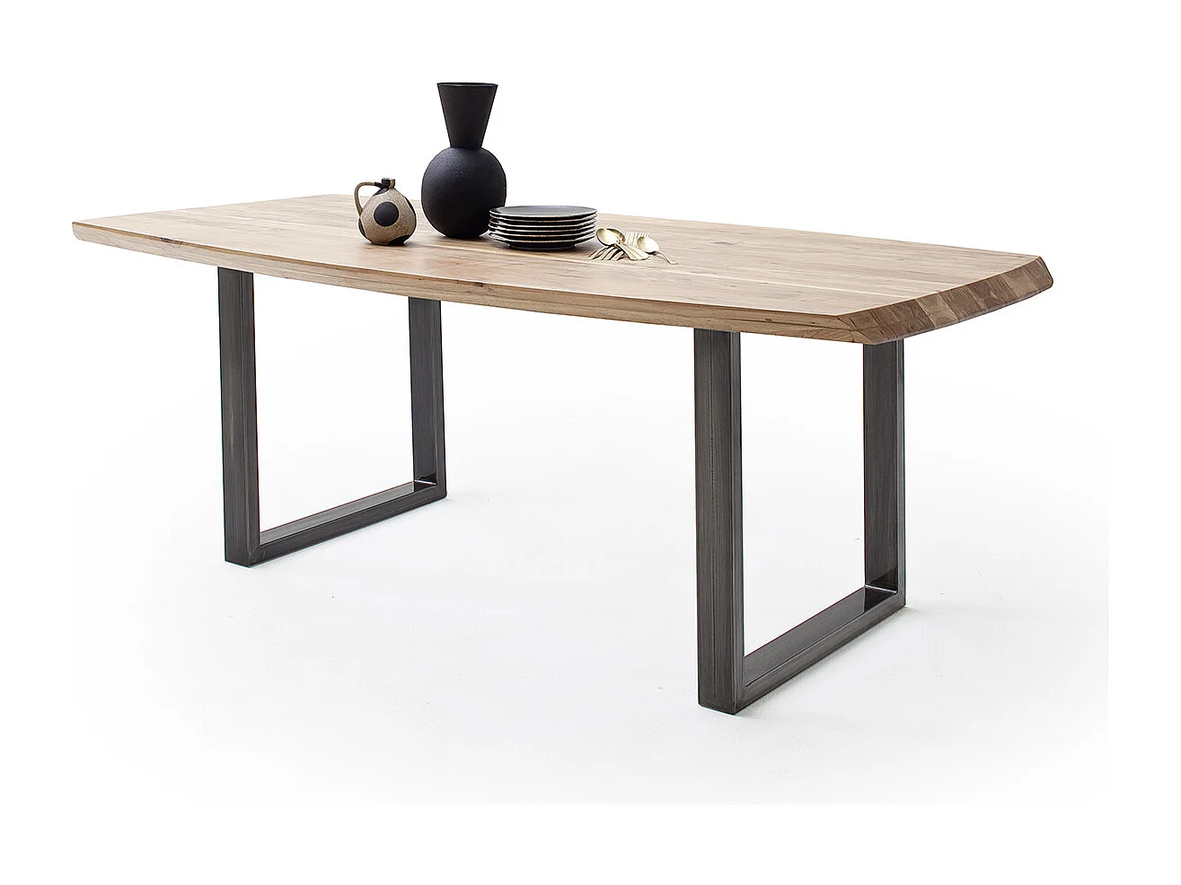 Table de salle à manger rectangulaire en bois d'acacia coloris naturel, pieds en métal anthracite antique - longueur 180 x hauteur 77 x profondeur 100 cm