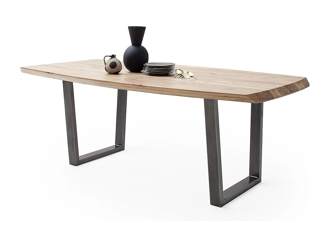 Table de salle à manger rectangulaire en bois d'acacia coloris naturel, pieds en métal anthracite antique - longueur 220 x hauteur 77 x profondeur 100 cm