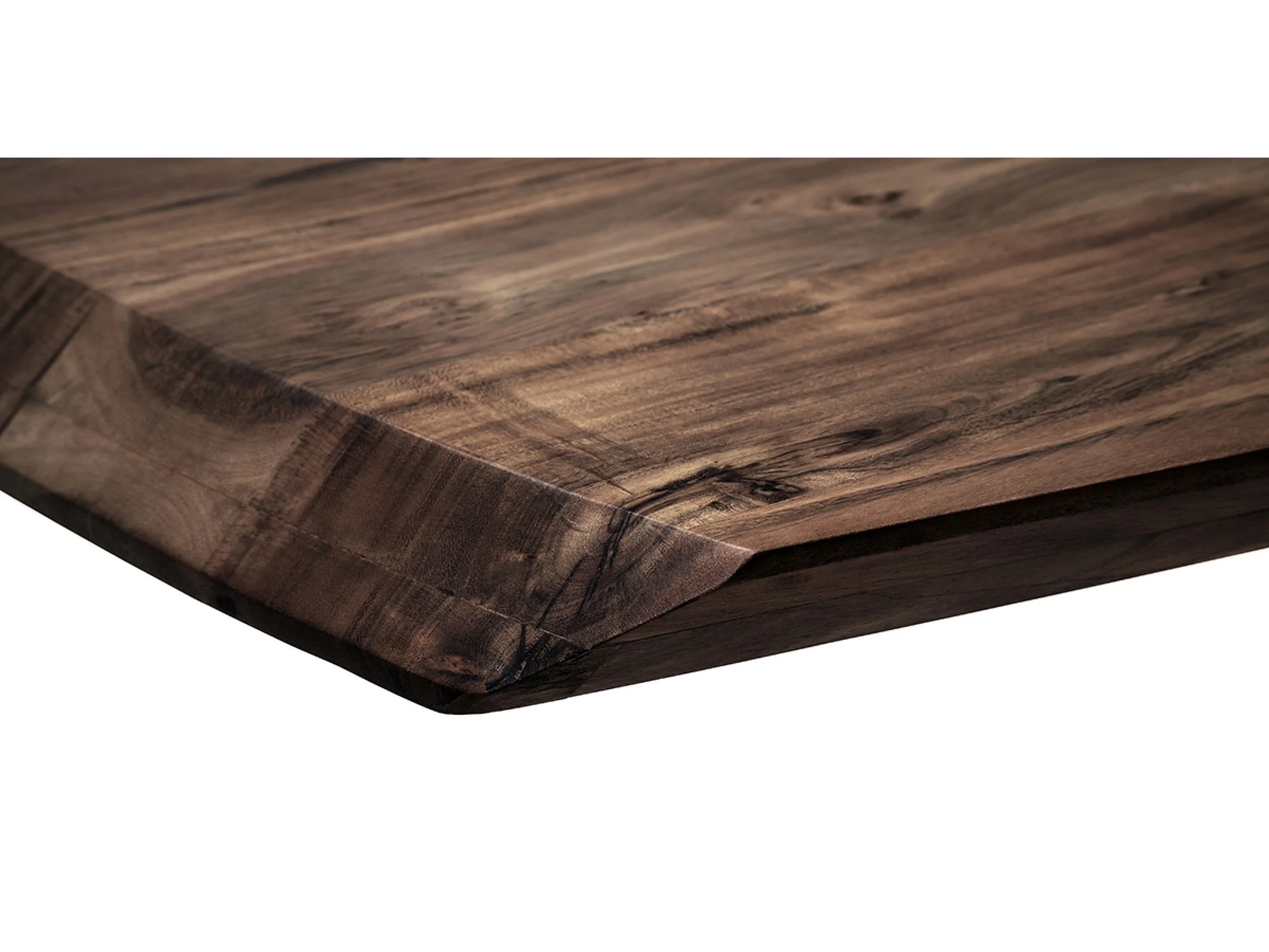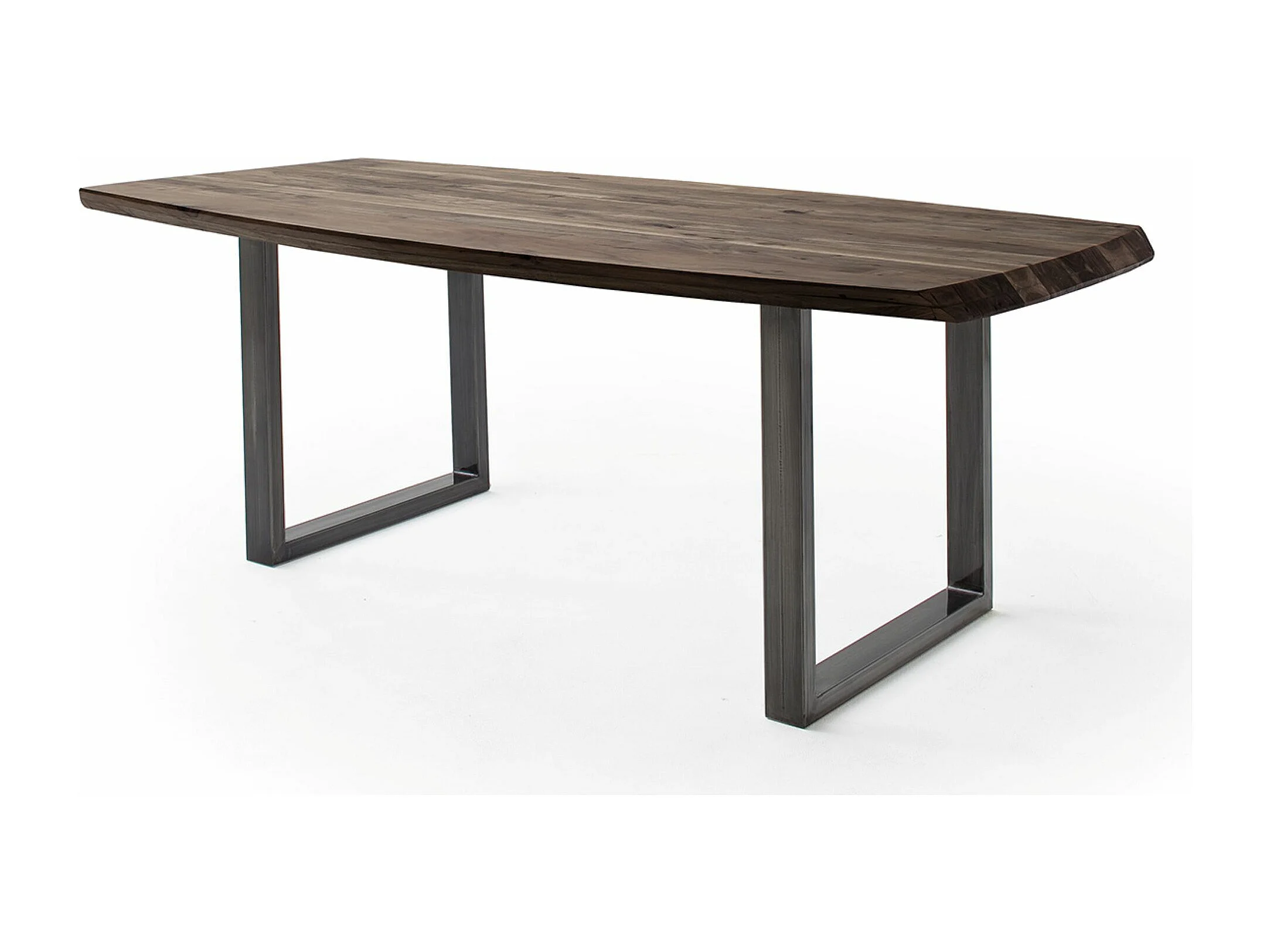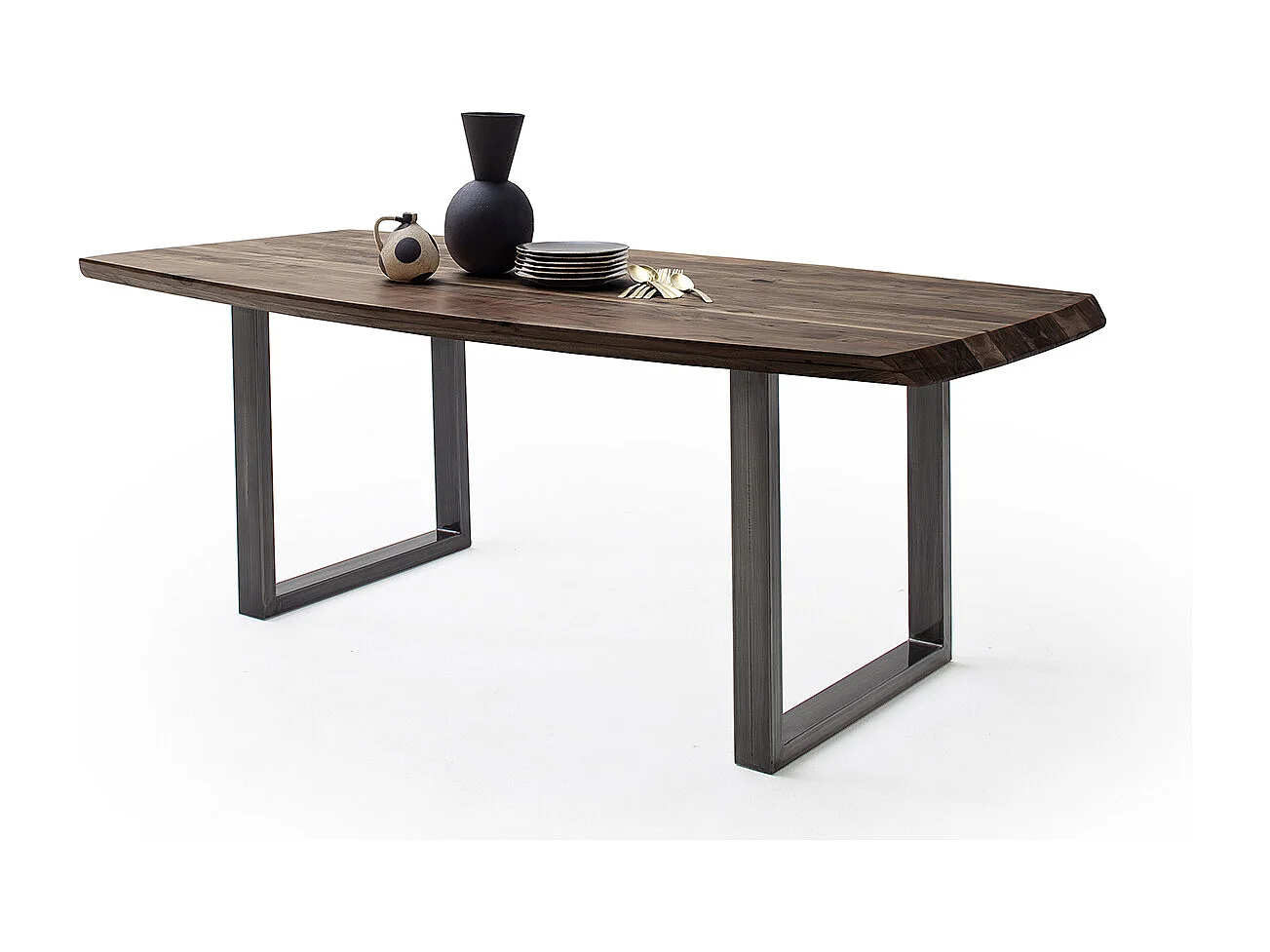 Table de salle à manger rectangulaire en bois d'acacia coloris noyer, pieds en métal anthracite antique - longueur 180 x hauteur 77 x profondeur 100 cm