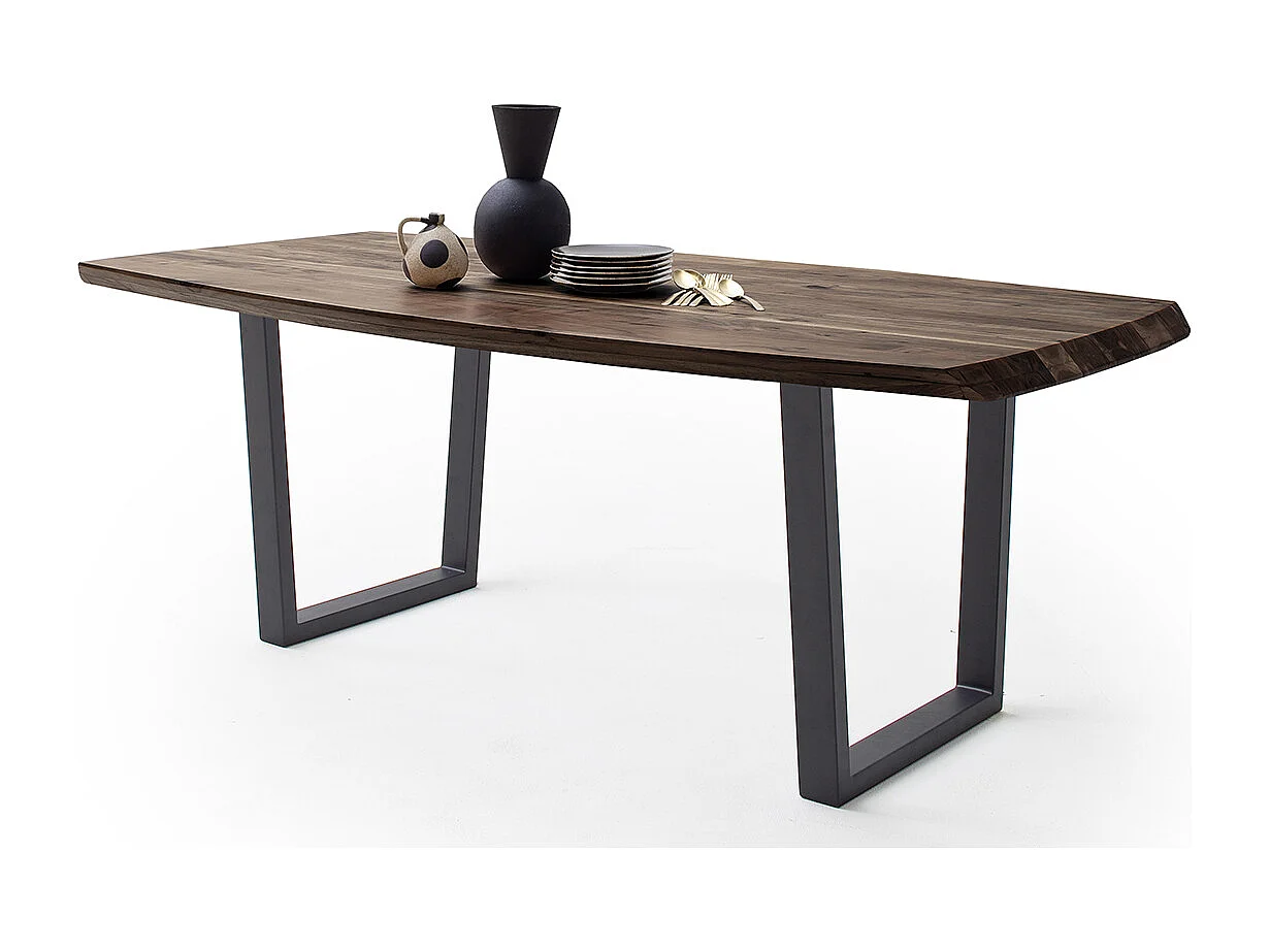 Table de salle à manger rectangulaire en bois d'acacia coloris Noyer, pieds en métal peint anthracite - longueur 200 x hauteur 77 x profondeur 100 cm