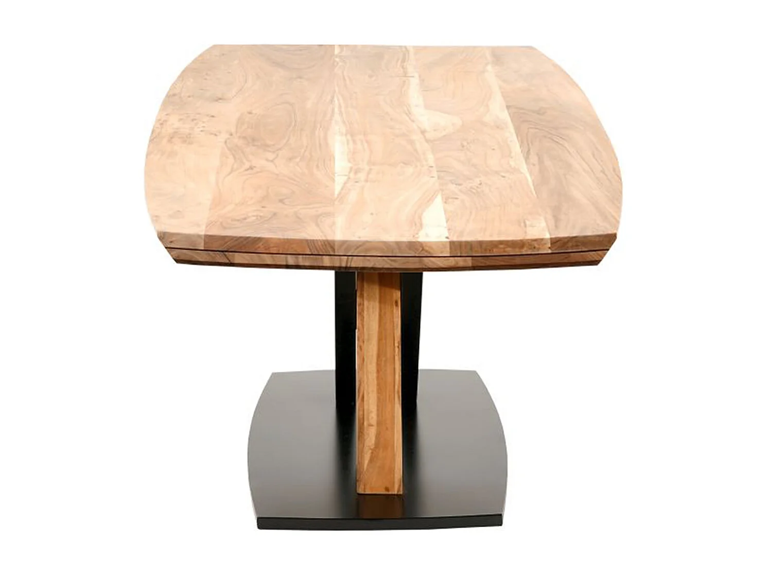 Table de salle à manger rectangulaire en bois d'acacia massif coloris naturel et pieds croisés en métal laqué noir mat