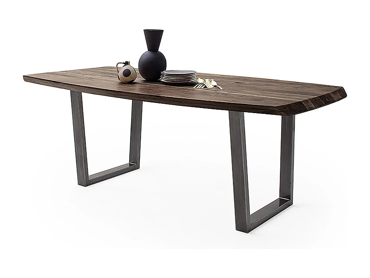 Table de salle à manger rectangulaire en bois d'acacia noyer, pieds en métal anthracite antique - longueur 180 x hauteur 77 x profondeur 100 cm