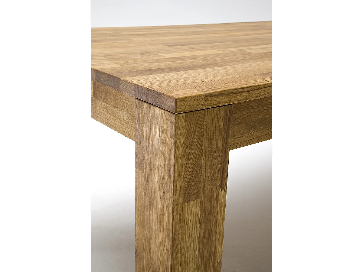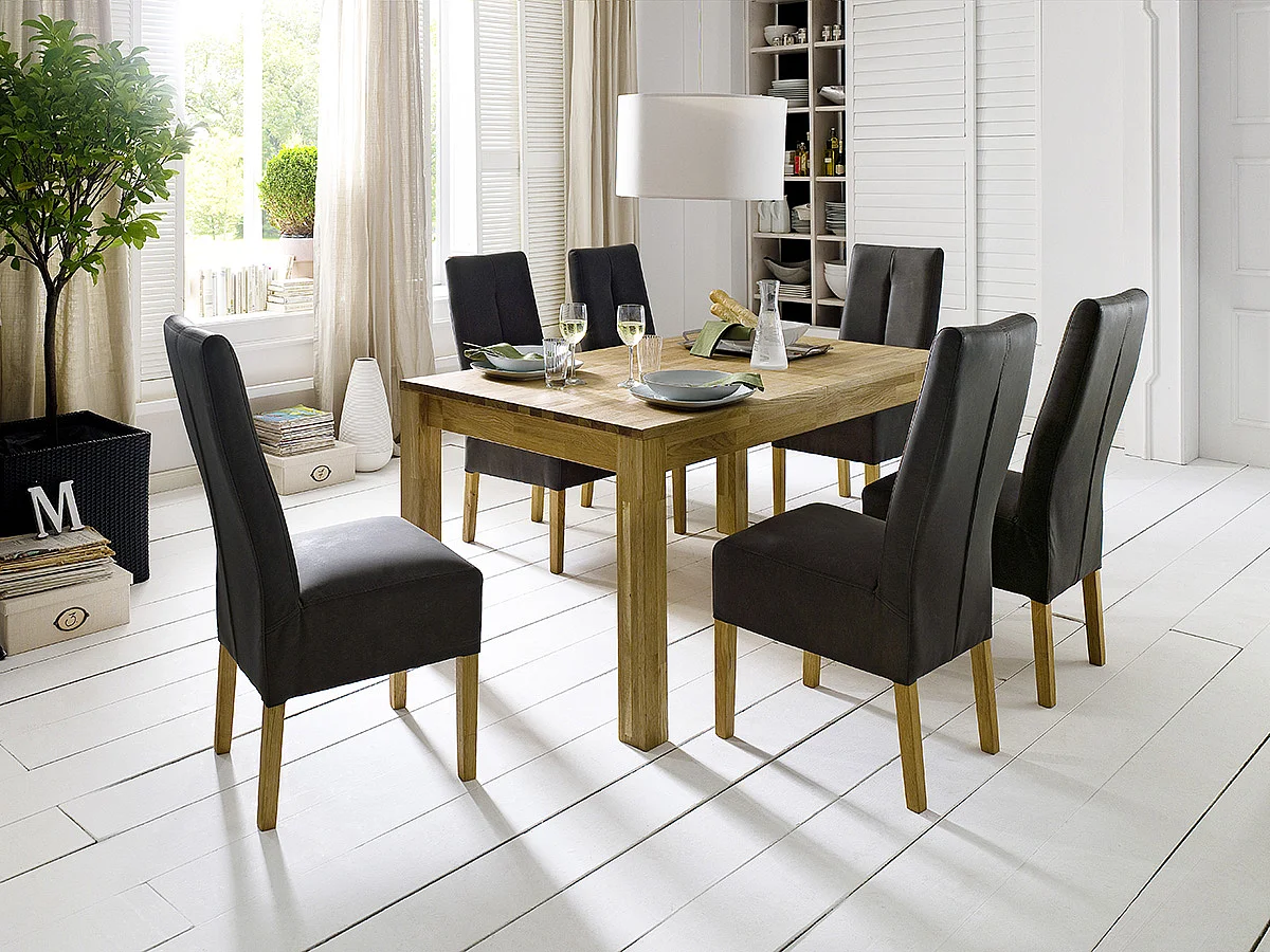 Table de salle à manger rectangulaire extensible en bois hêtre massif huilé coloris chêne sauvage - longueur 140-220 x hauteur 77 x profondeur 80 cm