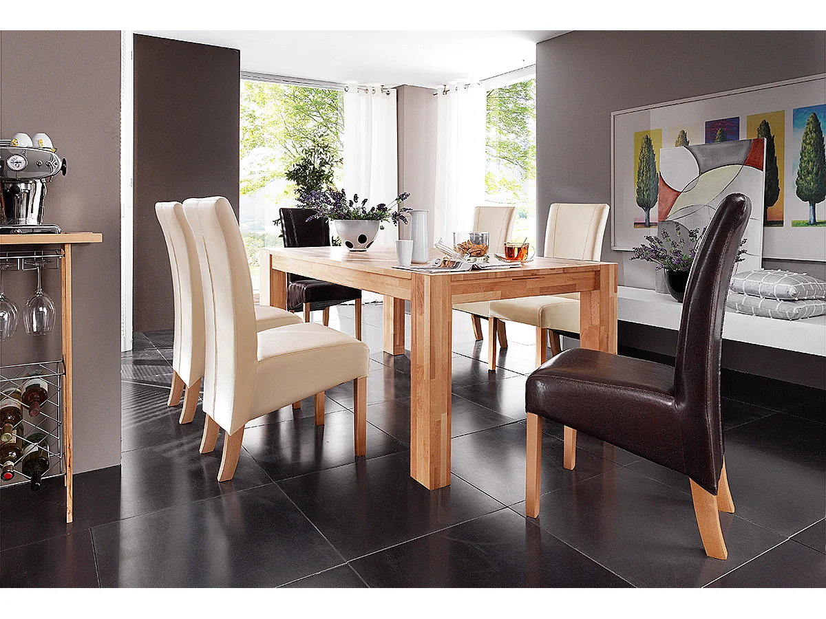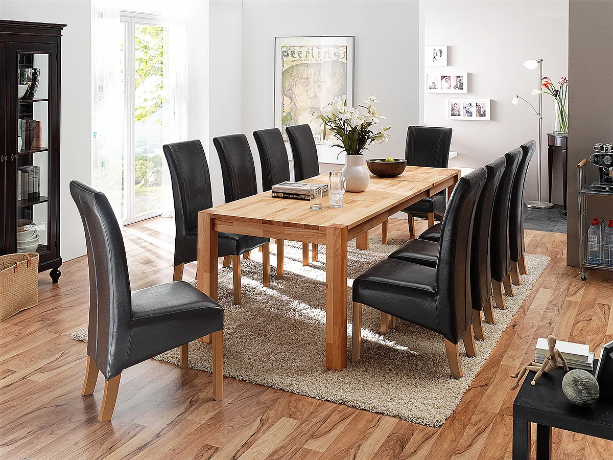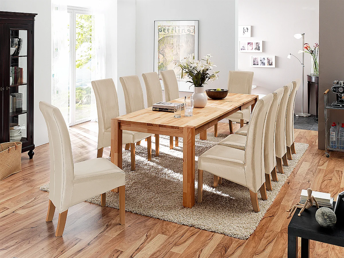 Table de salle à manger rectangulaire extensible en bois hêtre massif huilé coloris naturel - longueur 160-250 x hauteur 77 x profondeur 90 cm