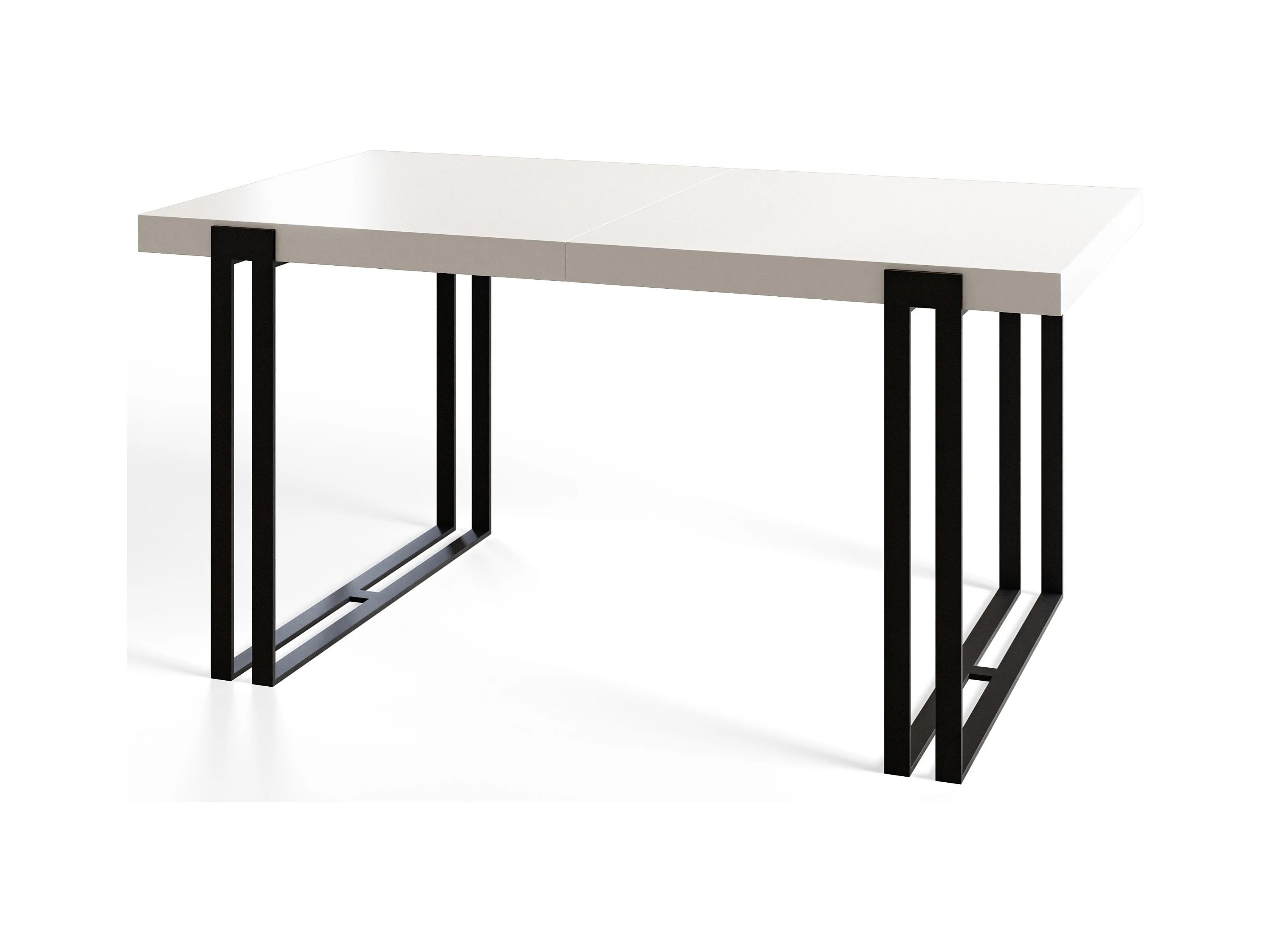 Table de salle à manger rectangulaire ROSA, table à rallonges, dimensions: 120-220X80X77 cm,couleur: blanc, avec pieds métalliques de couleur noir