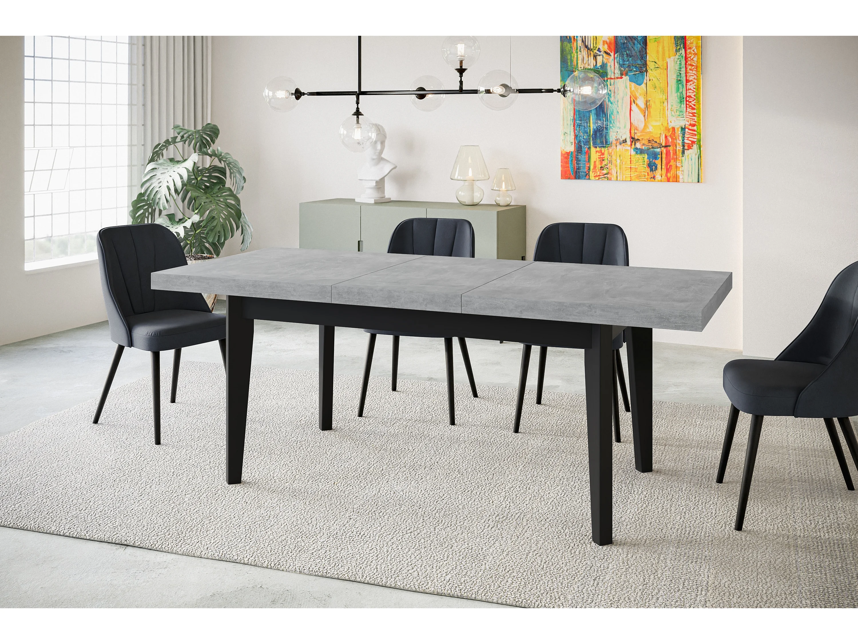 Table de salle à manger rectangulaire SKANDI, table à rallonges, dimensions: 140-180X80X78 cm, couleur: ATELIER, avec pieds en bois de couleur noire