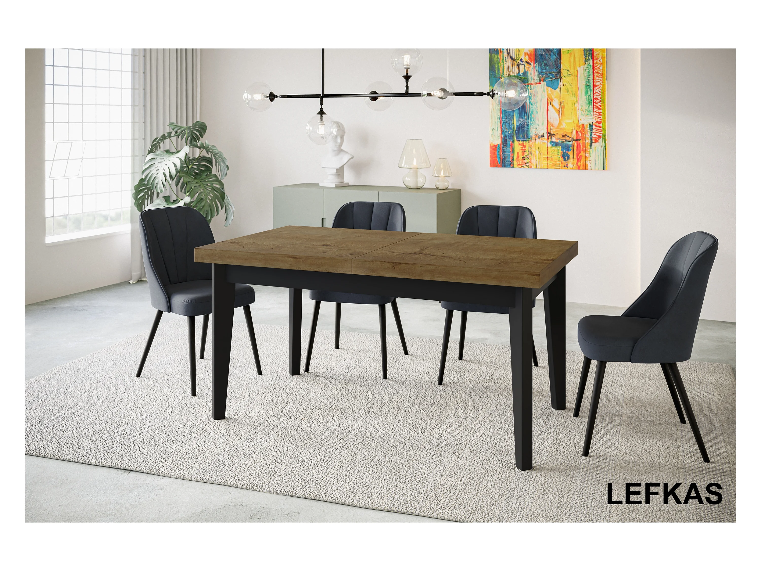 Table de salle à manger rectangulaire SKANDI, table à rallonges, dimensions: 140-180X80X78 cm, couleur: LEFKAS, avec pieds en bois de couleur noire