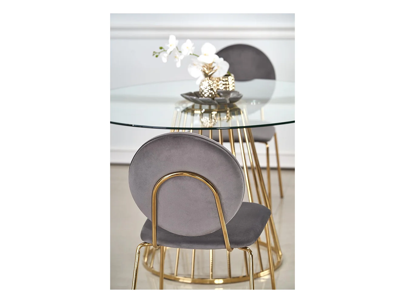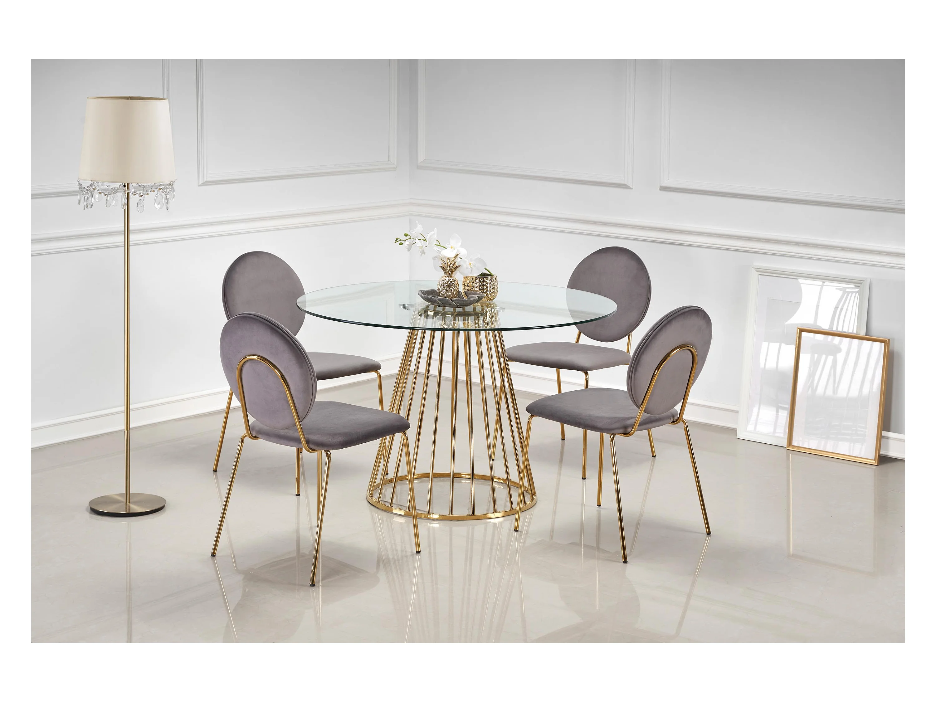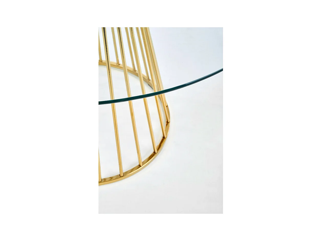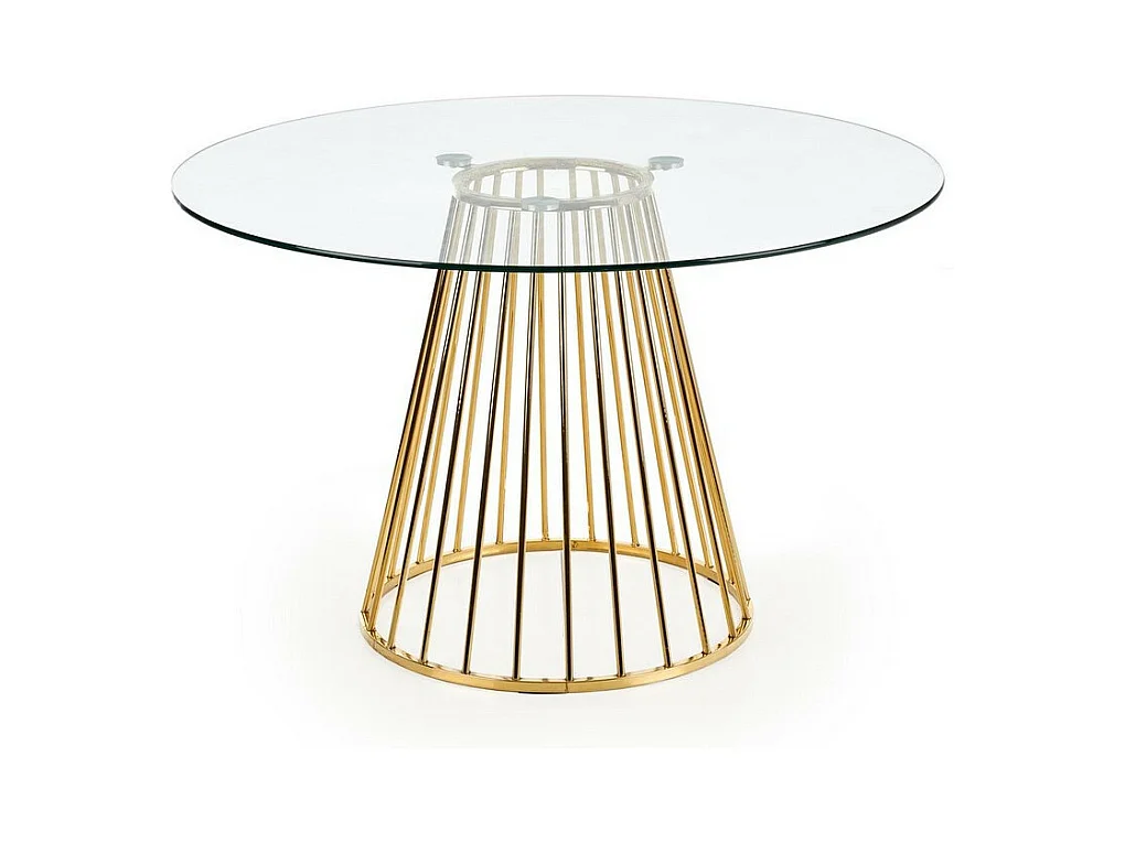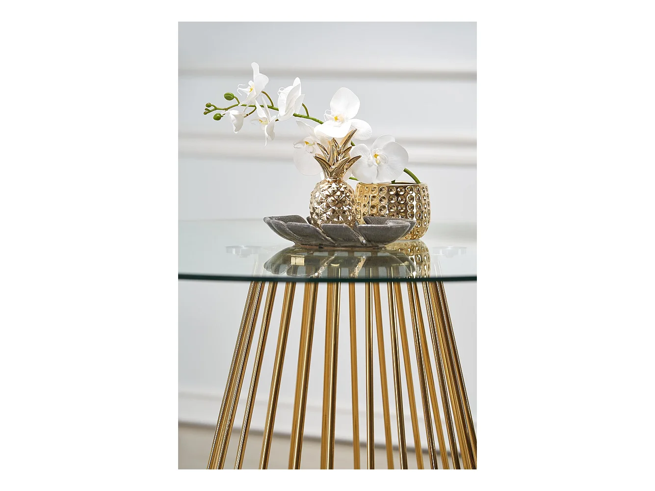 Table de salle à manger ronde avec plateau en verre et pied central en acier doré Cambridge