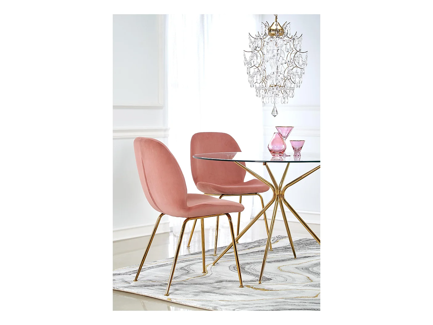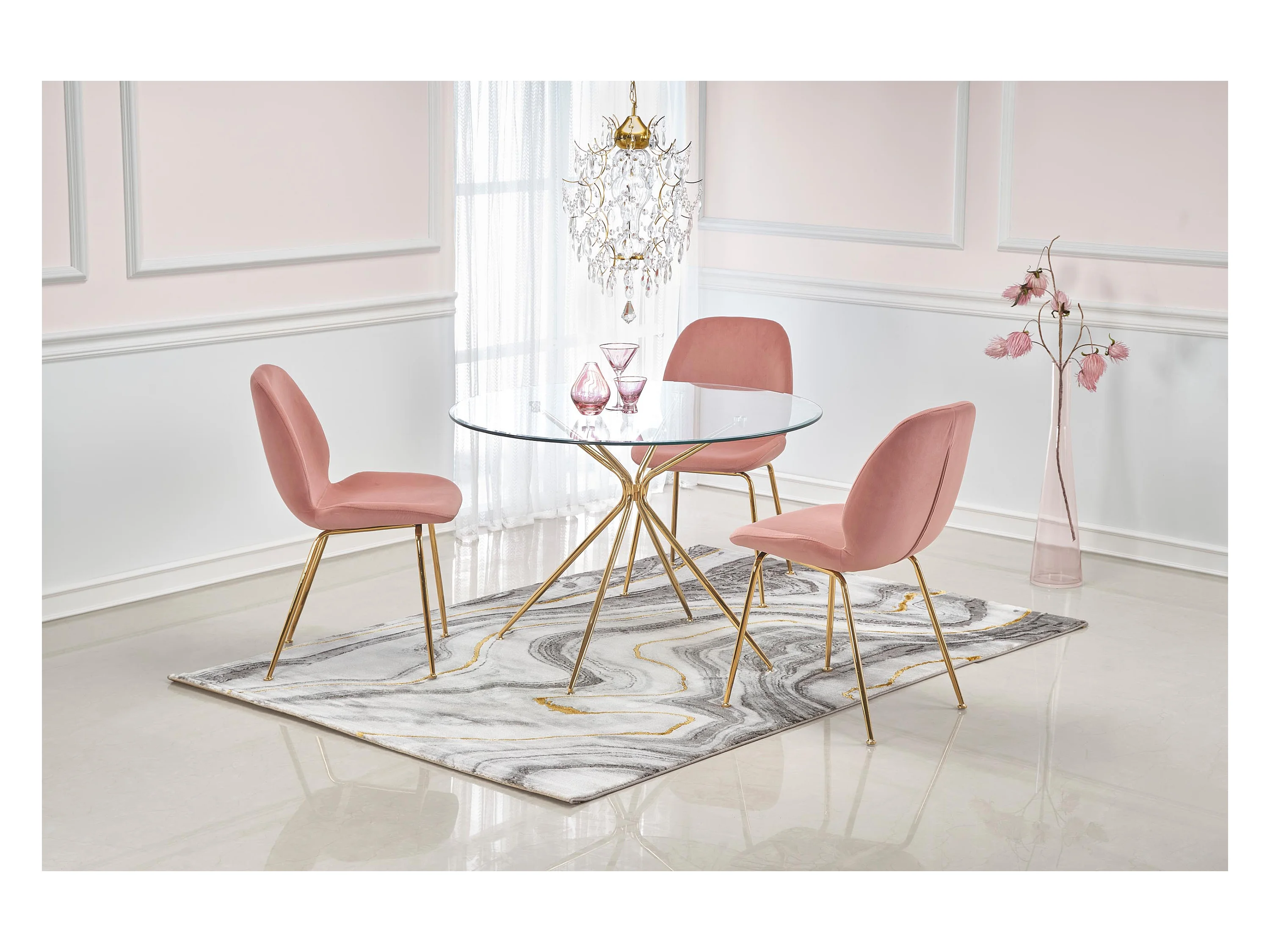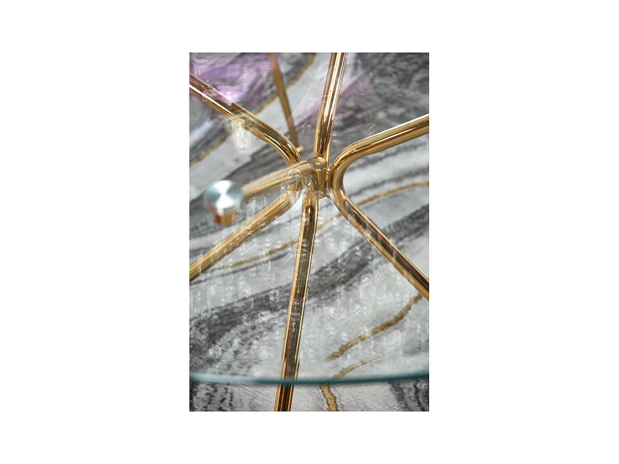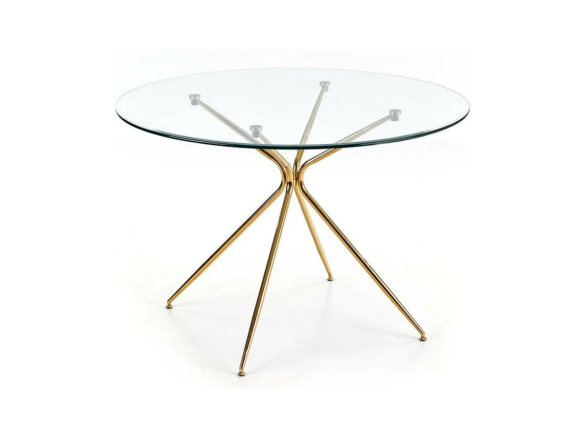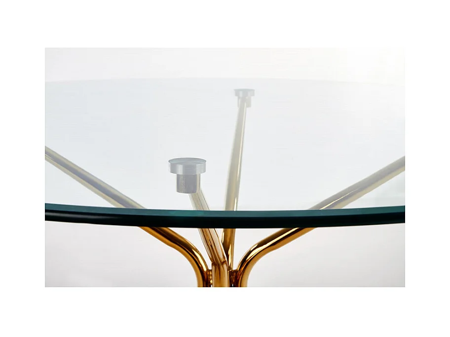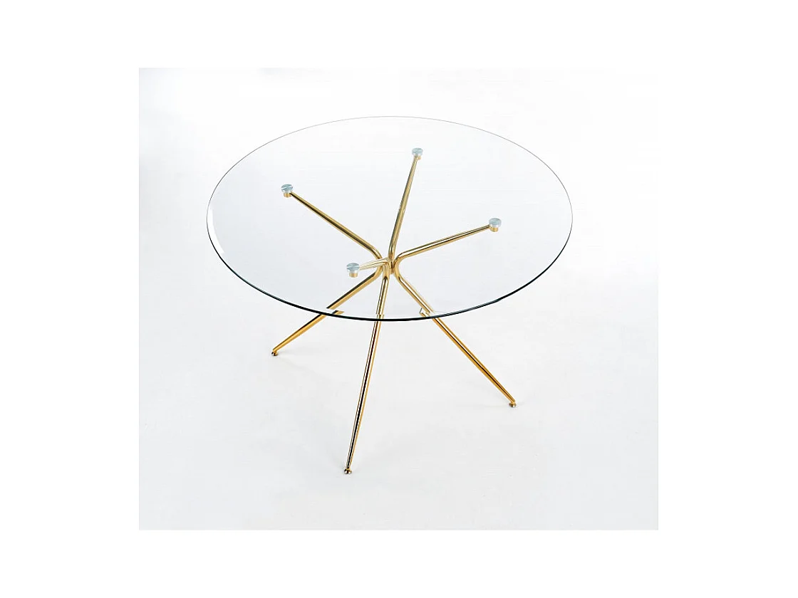 Table de salle à manger ronde avec plateau verre de 110cm et pied métal doré Around