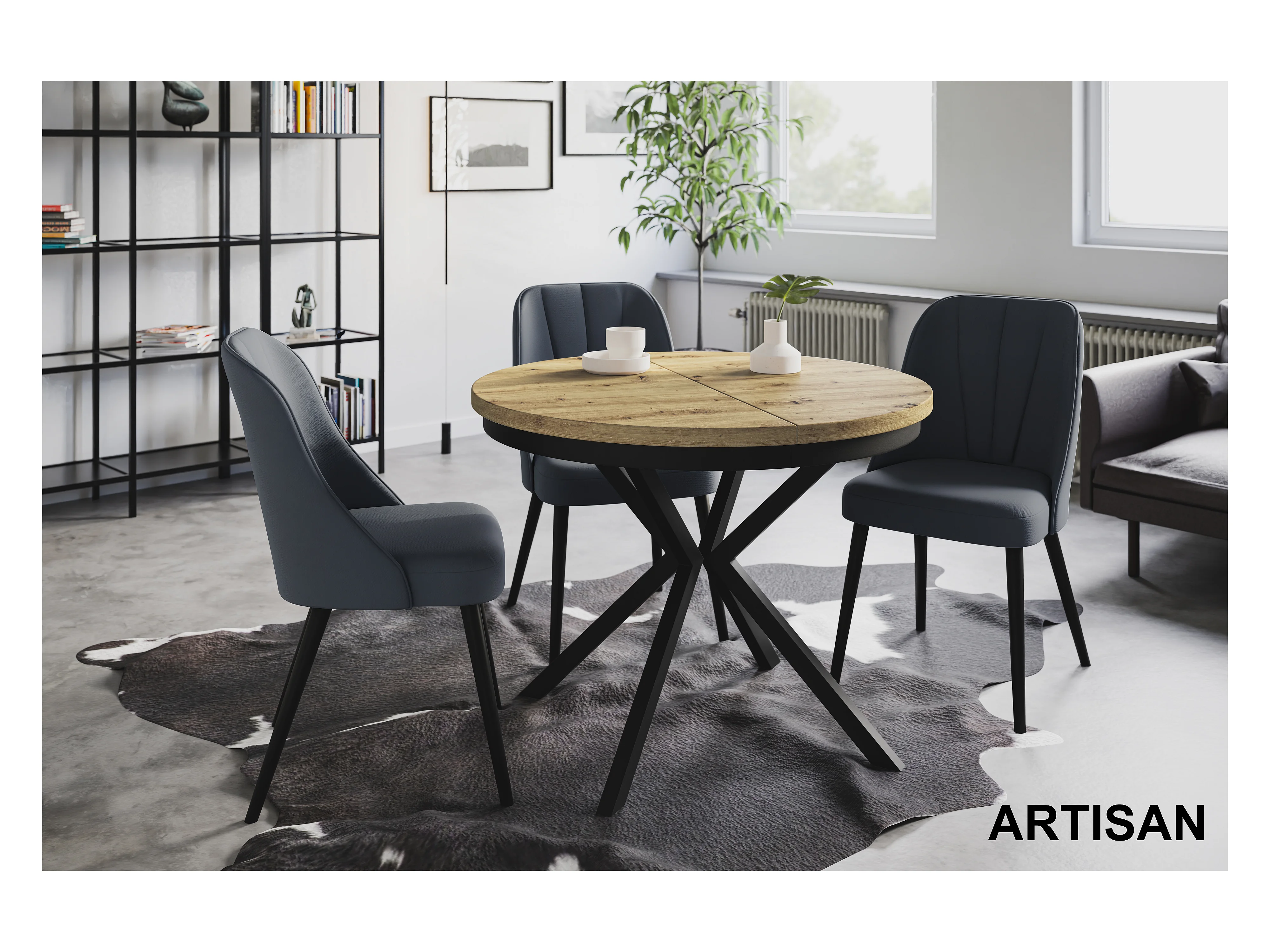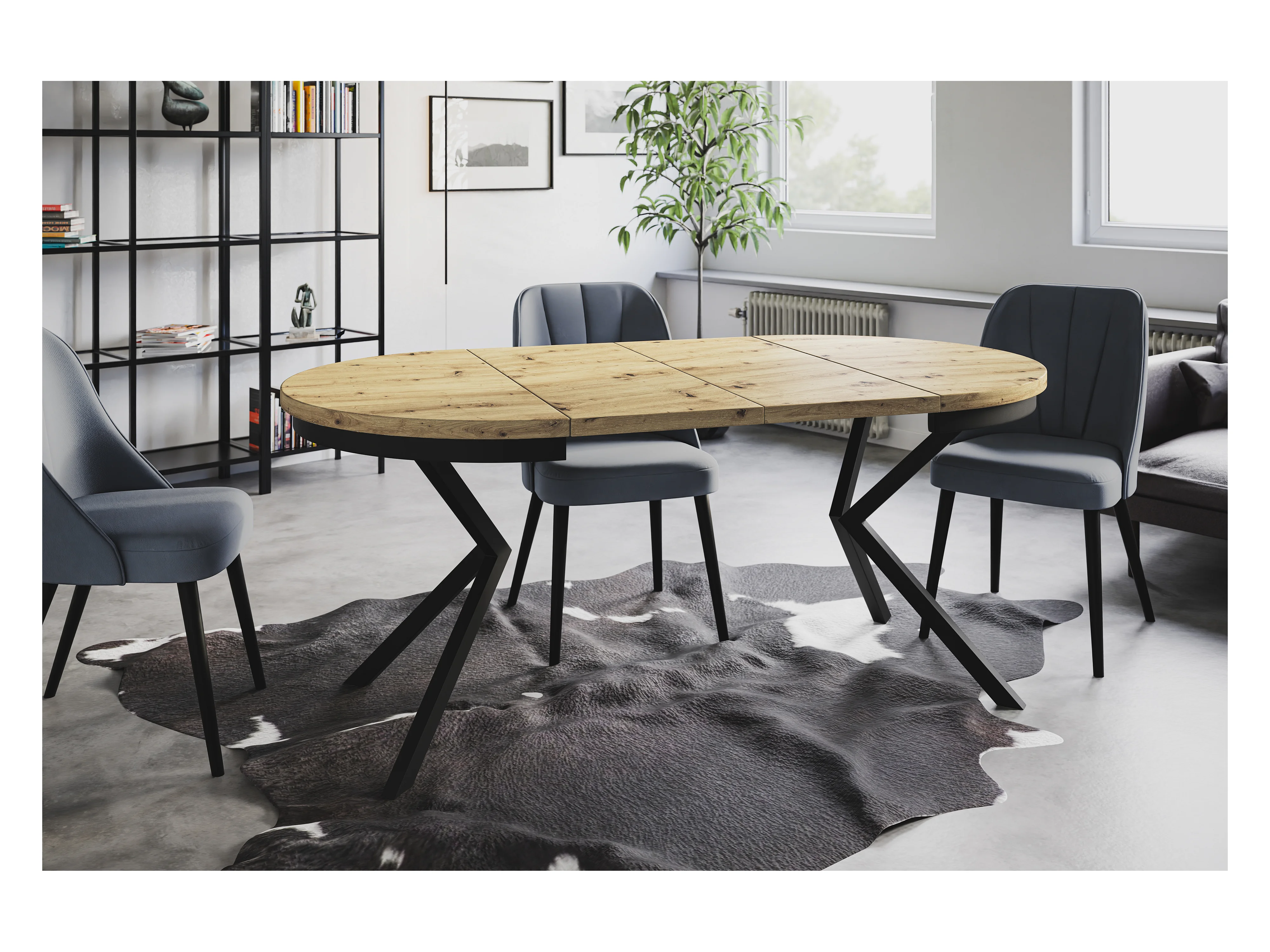Table de salle à manger ronde BERGO, table à rallonges Diamètre : 120 cm/200 cm, couleur de la table basse : brun mat, avec pieds métalliques de couleur noire