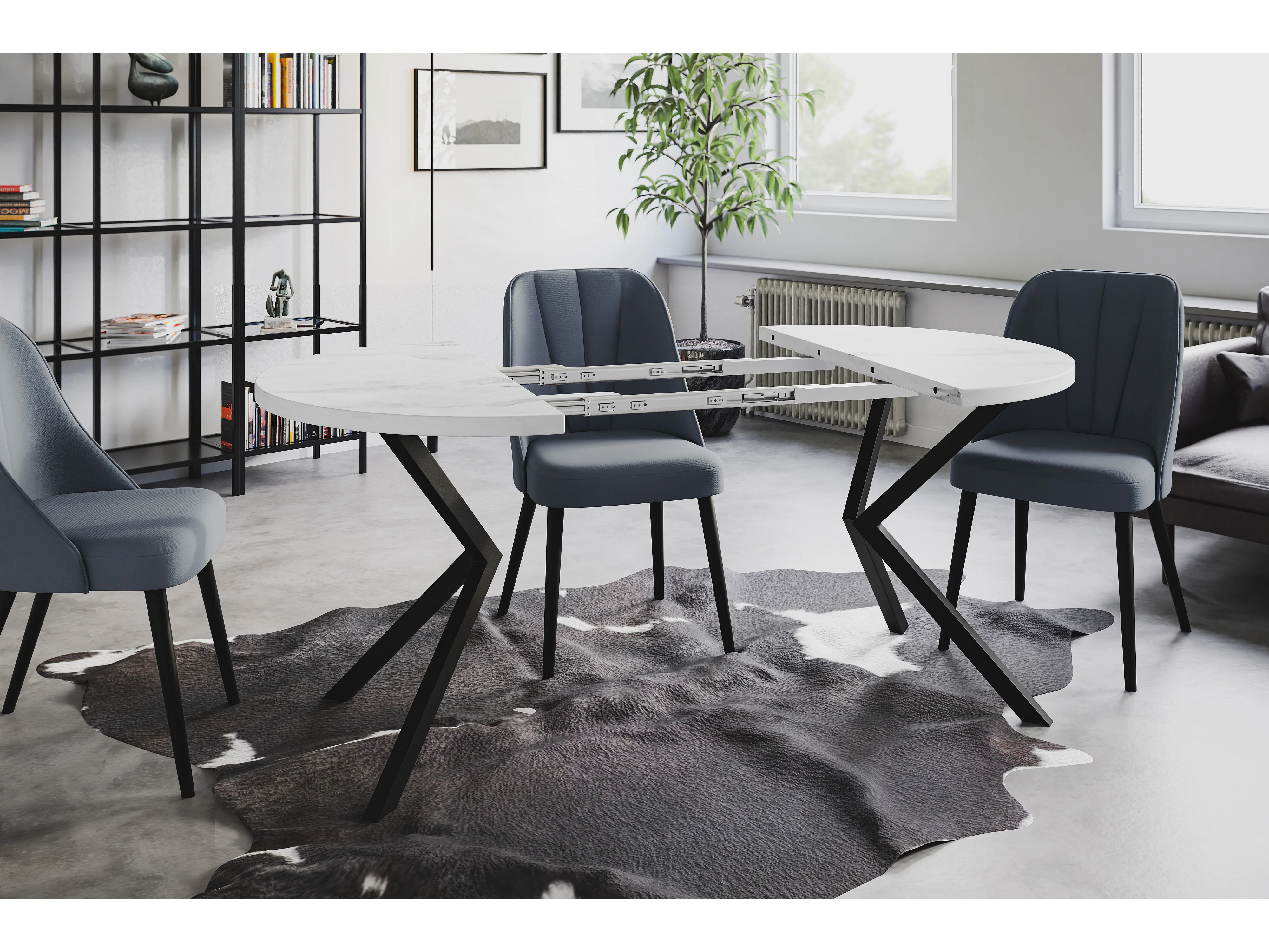 Table de salle à manger ronde BERGO, table à rallonges Diamètre : 120 cm/200 cm, couleur de la table basse : marbre, avec pieds métalliques de couleur noire