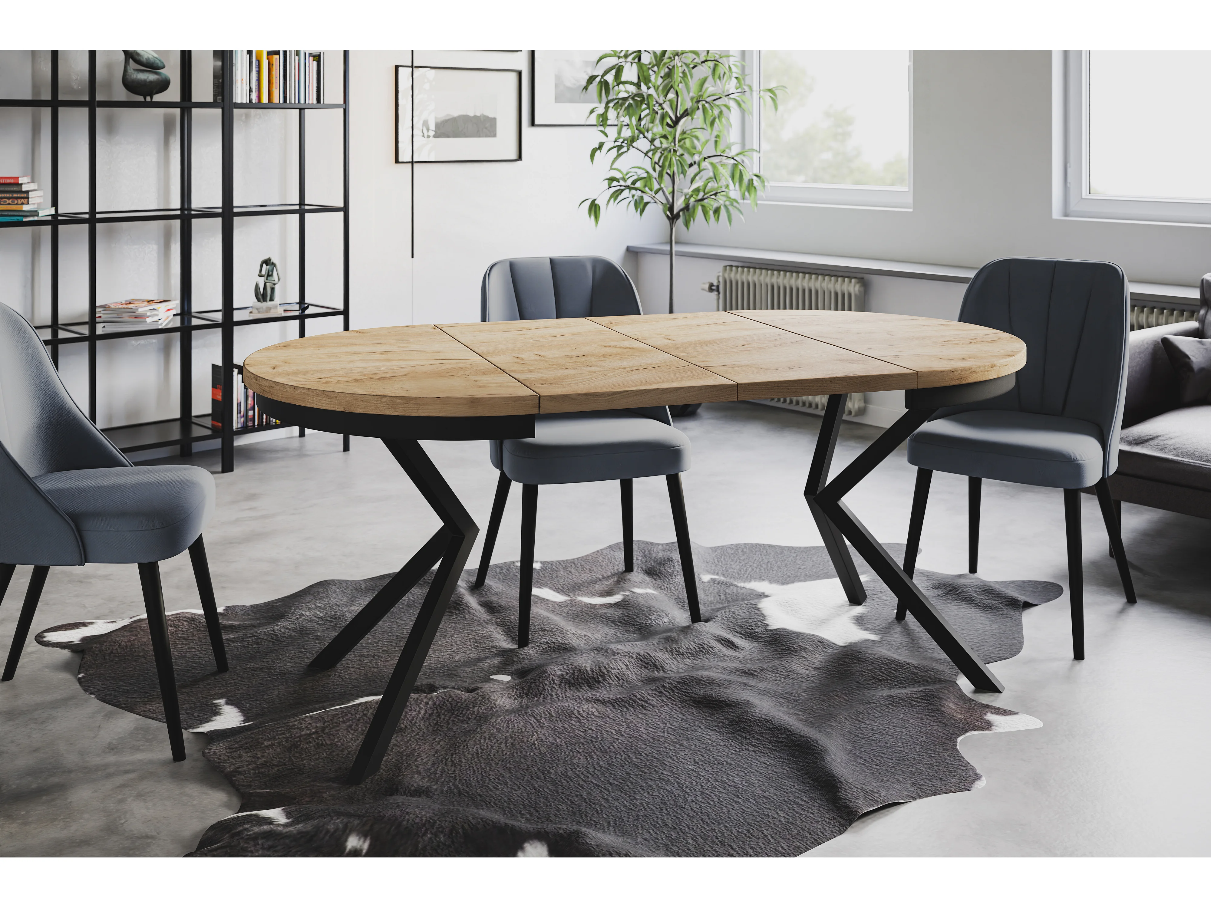 Table de salle à manger ronde BERGO, table à rallonges Diamètre : 120 cm/200 cm, couleur de la table basse : marron, avec pieds métalliques de couleur noire