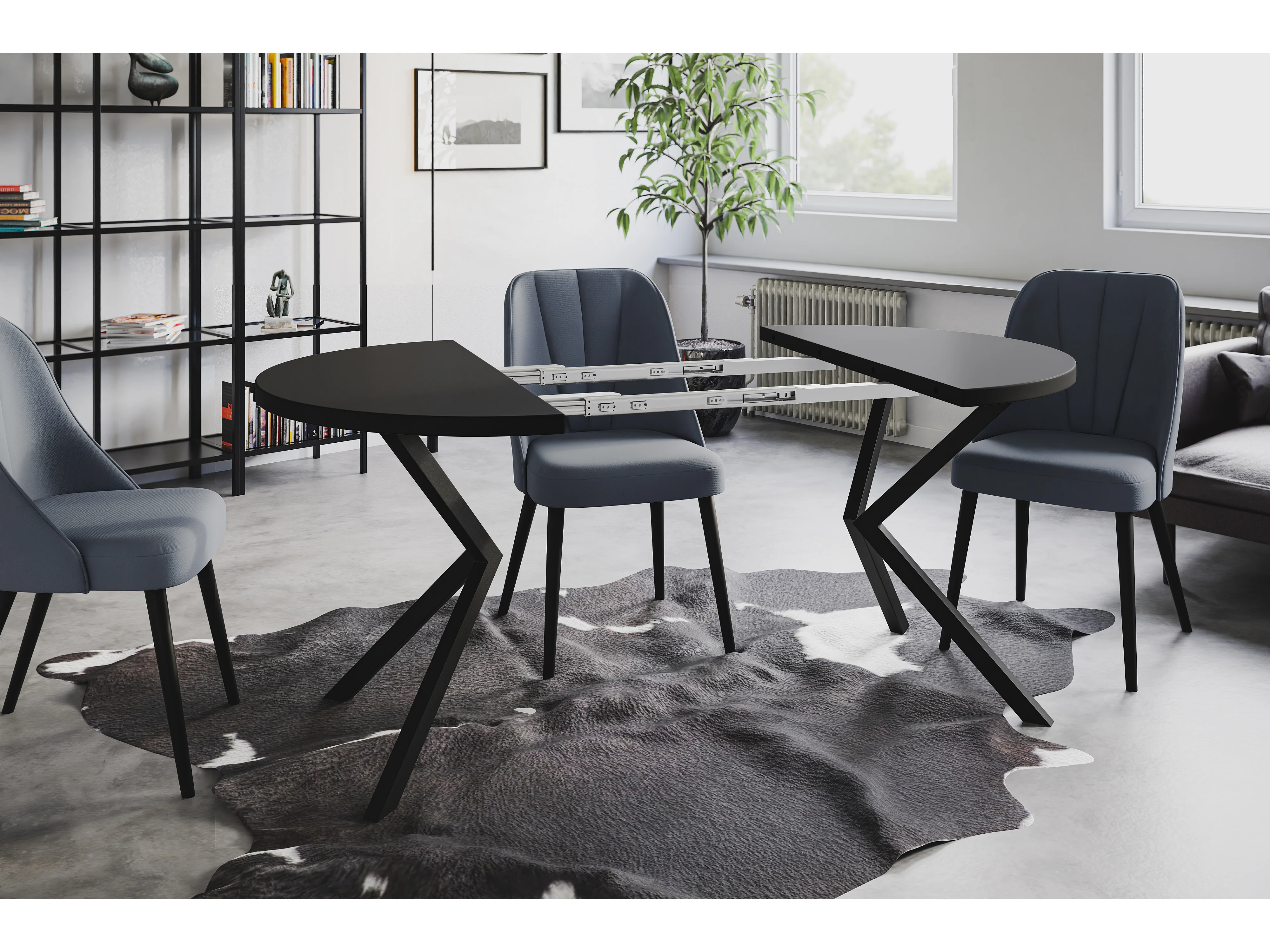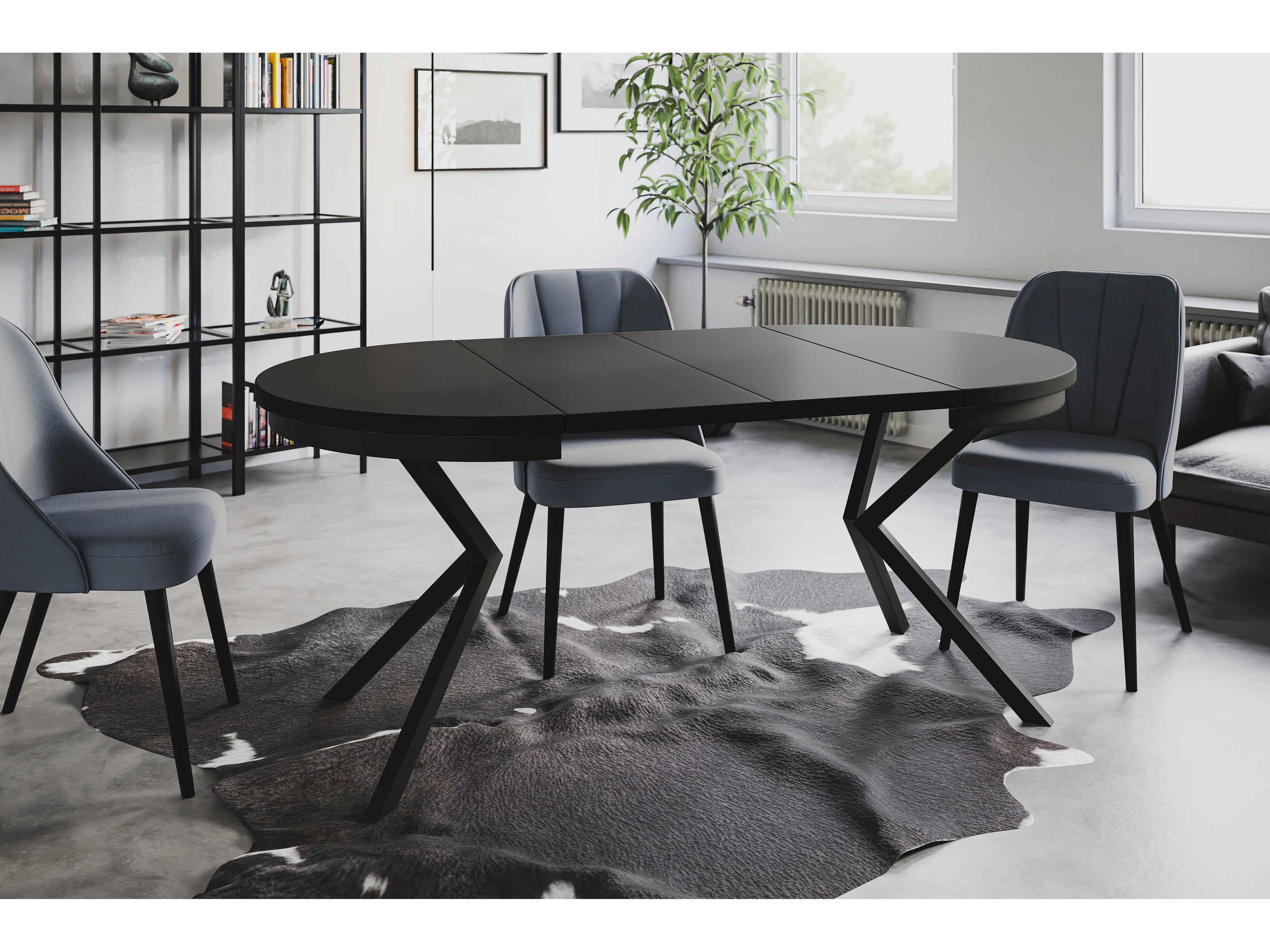 Table de salle à manger ronde BERGO, table à rallonges Diamètre : 120 cm/200 cm, couleur de la table basse : noir, avec pieds métalliques de couleur noire