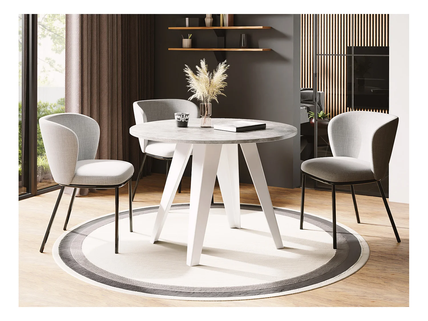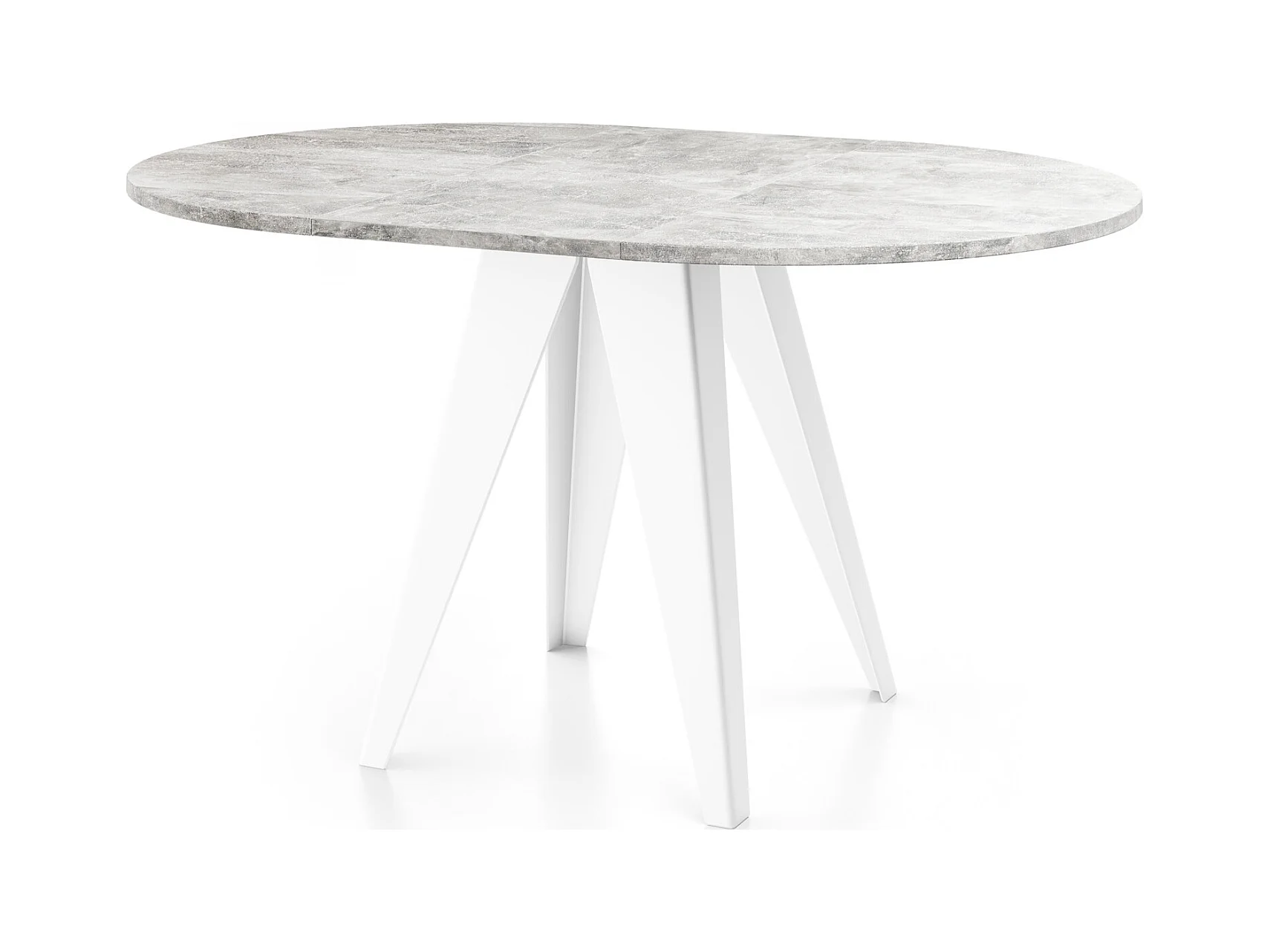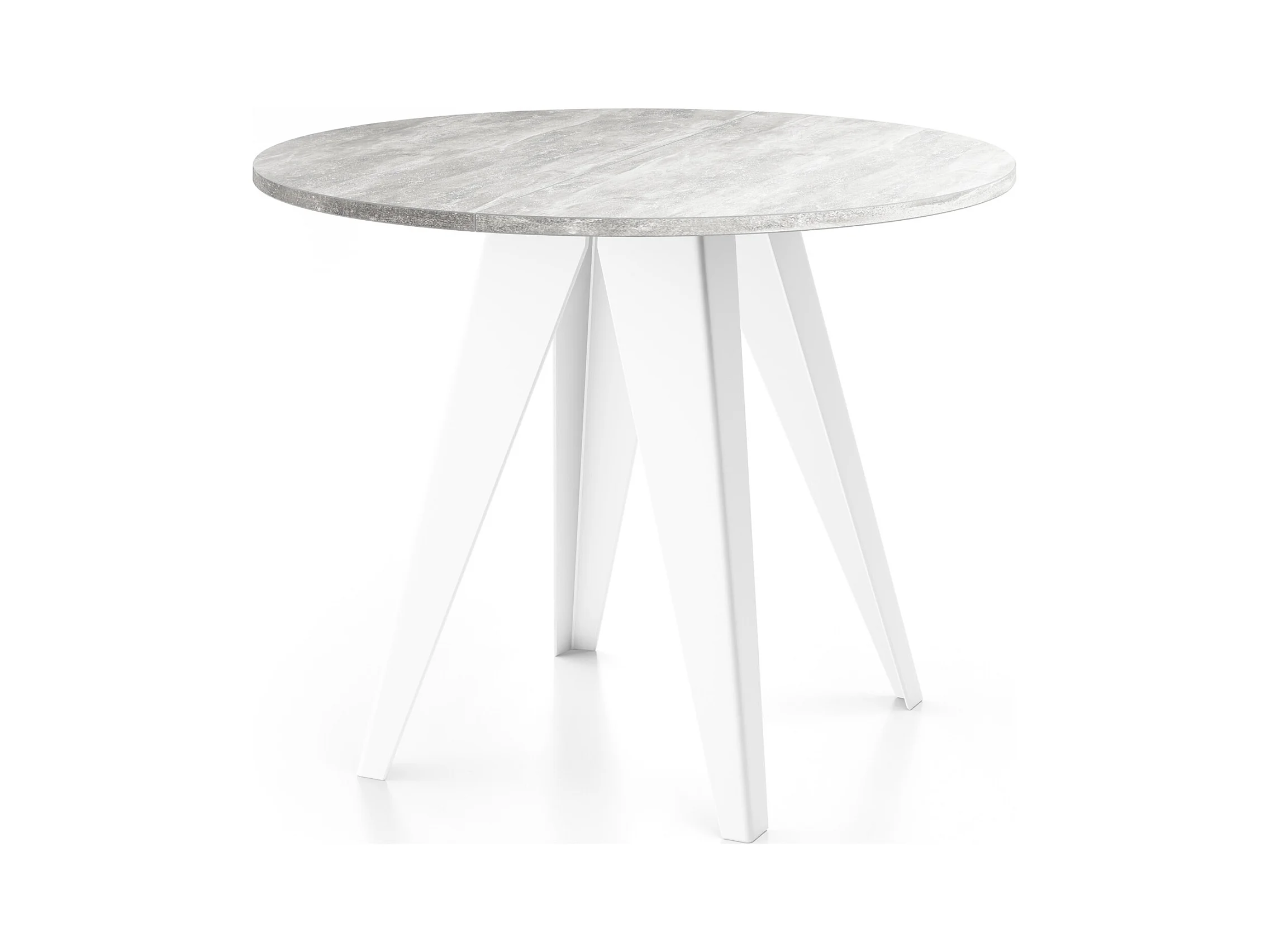 Table de salle à manger Ronde de style industriel - Moderne - Extensible de 90 cm à 130 cm - Pieds métalliques blancs - Compacte - Gris Béton