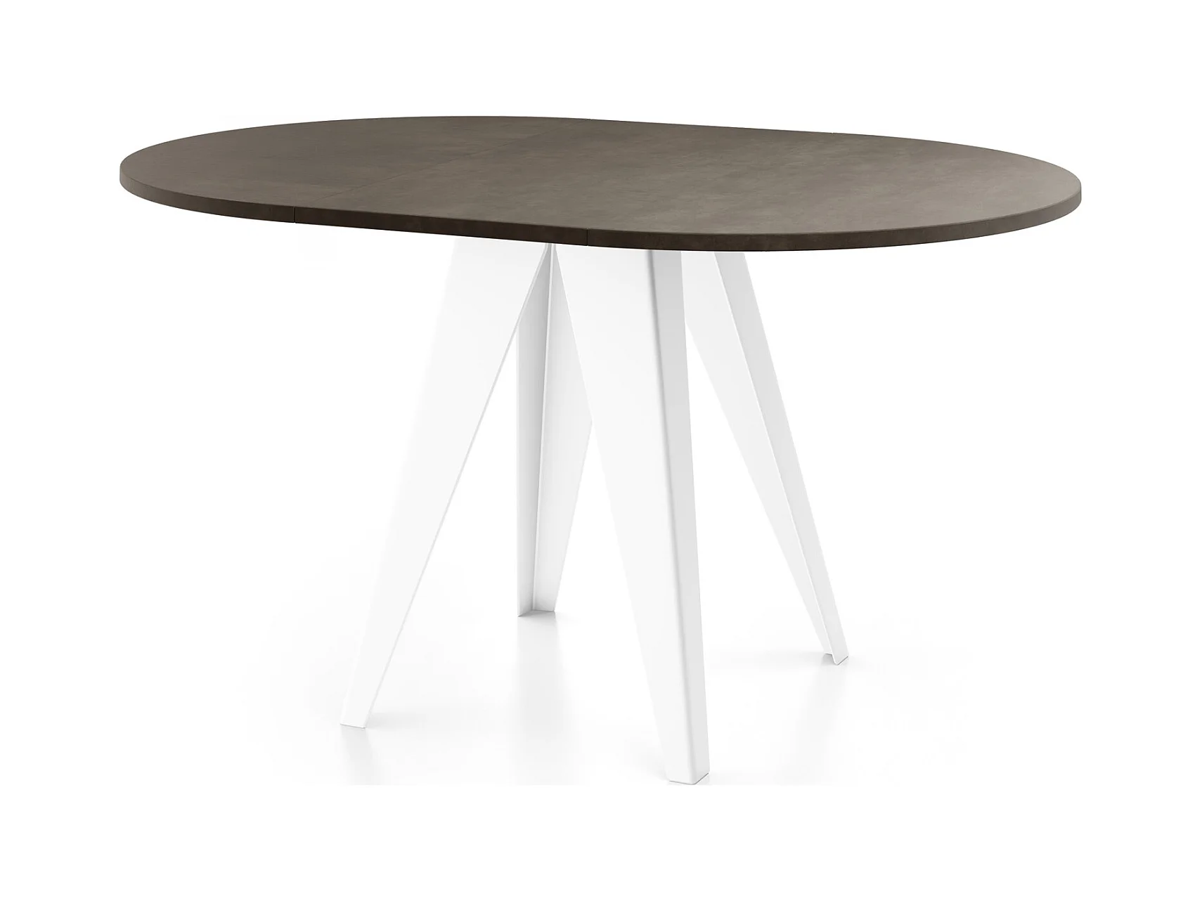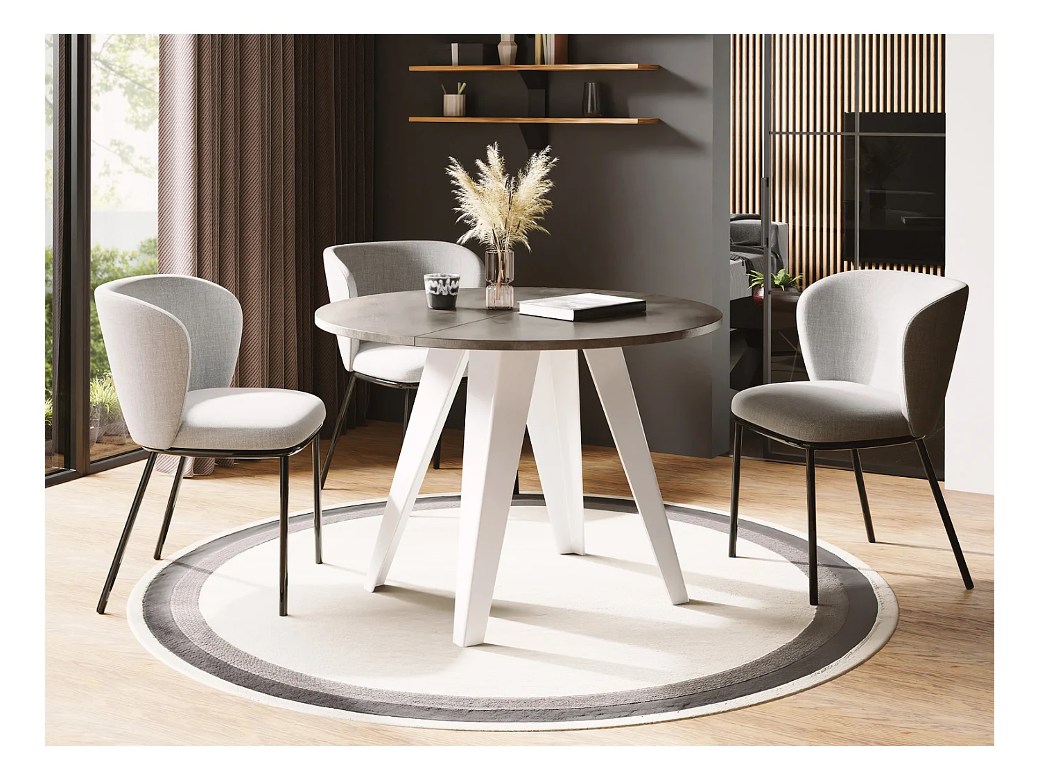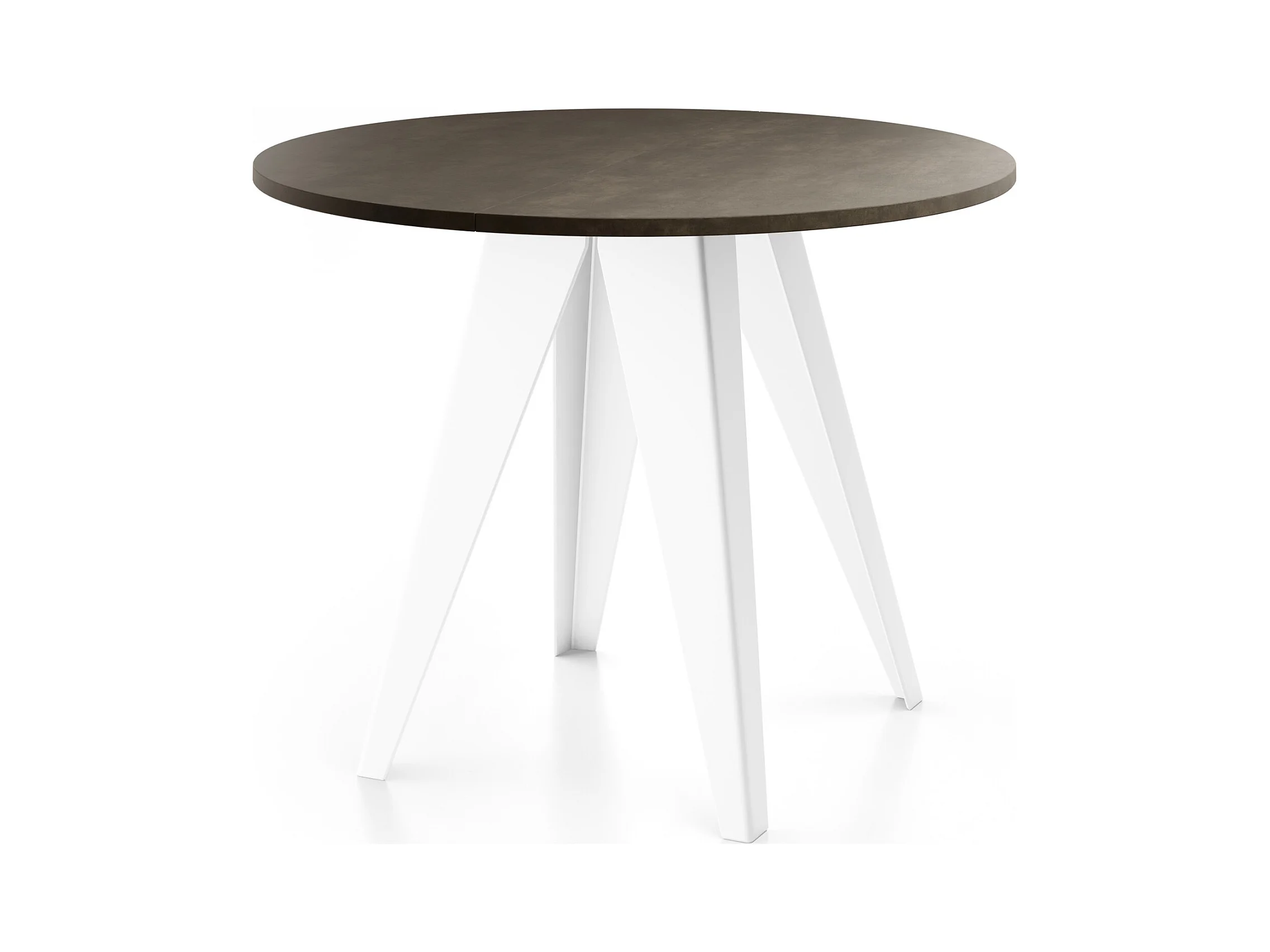 Table de salle à manger Ronde de style industriel - Moderne - Extensible de 90 cm à 130 cm - Pieds métalliques blancs - Compacte - Gris Béton Foncé