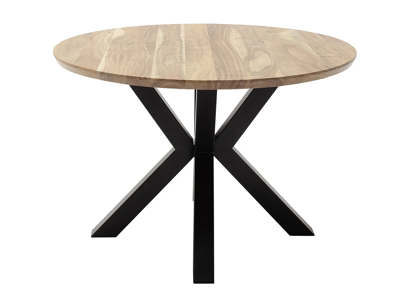 Table de salle à manger ronde en bois d'acacia coloris naturel, pieds en métal noir - diamètre 120 x hauteur 77 cm