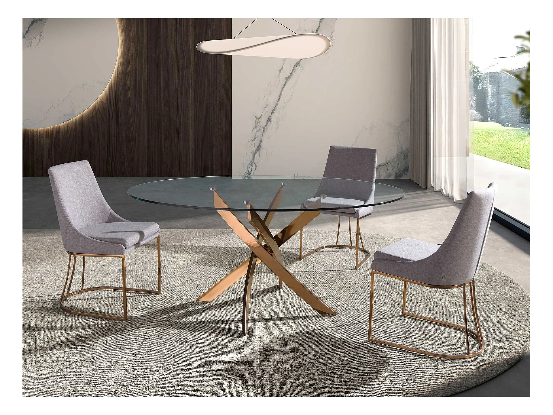 Table de salle à manger ronde en verre trempé et acier rose 1169-Ø110 ANGEL CERDA