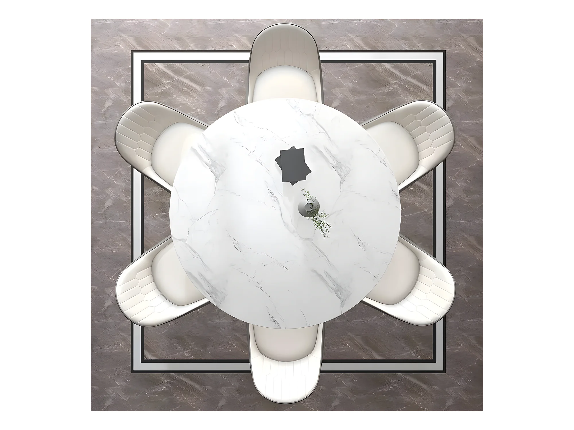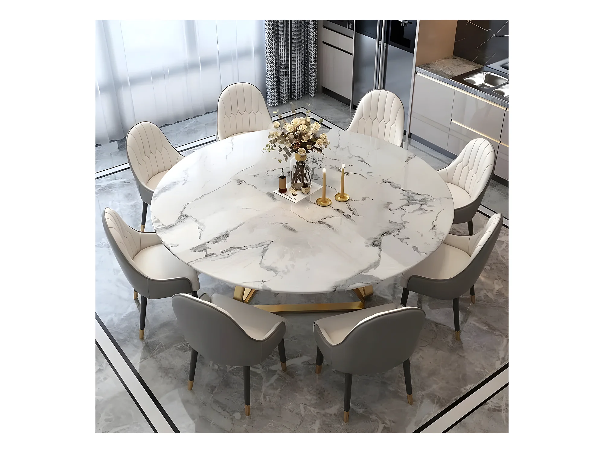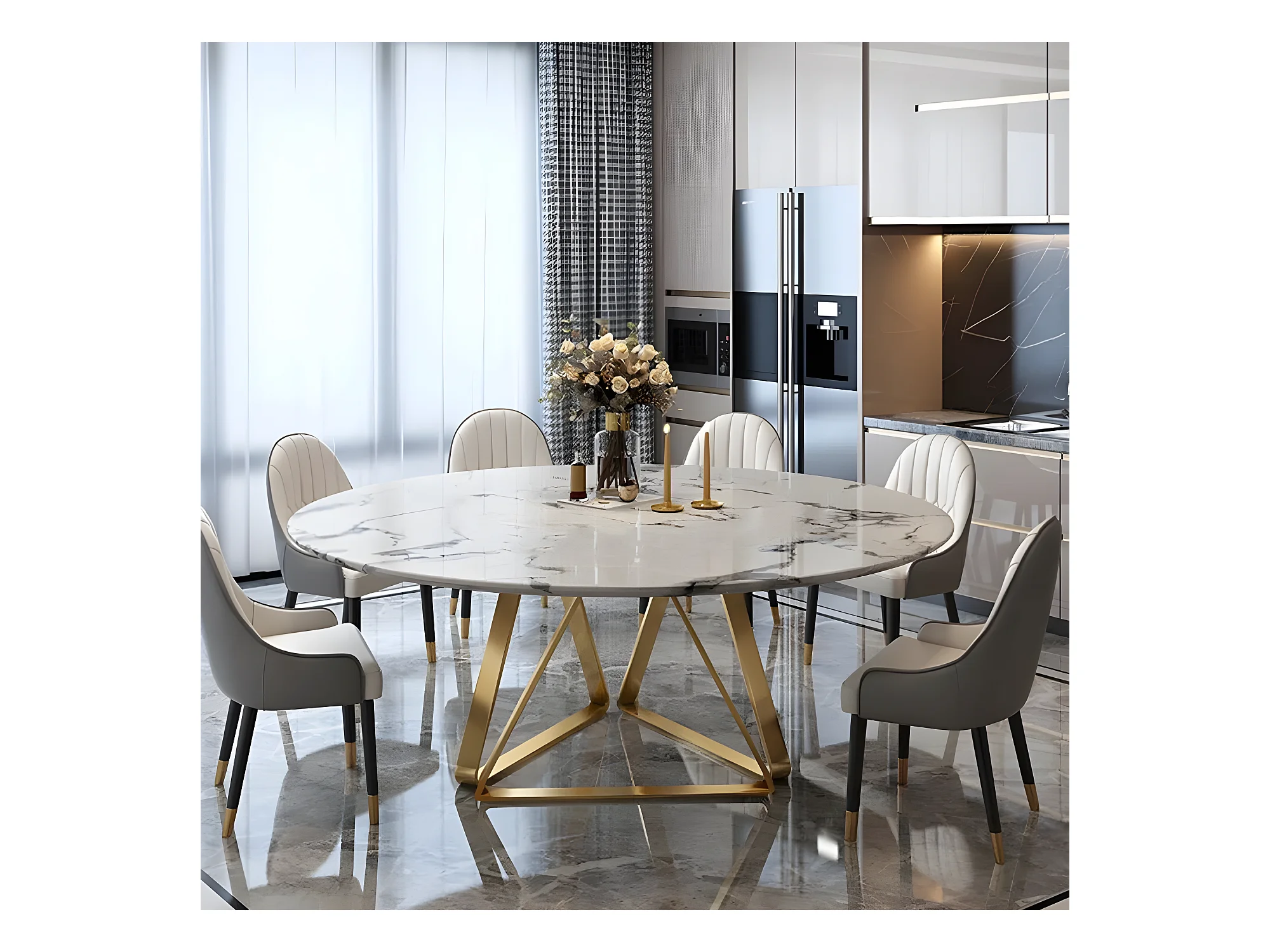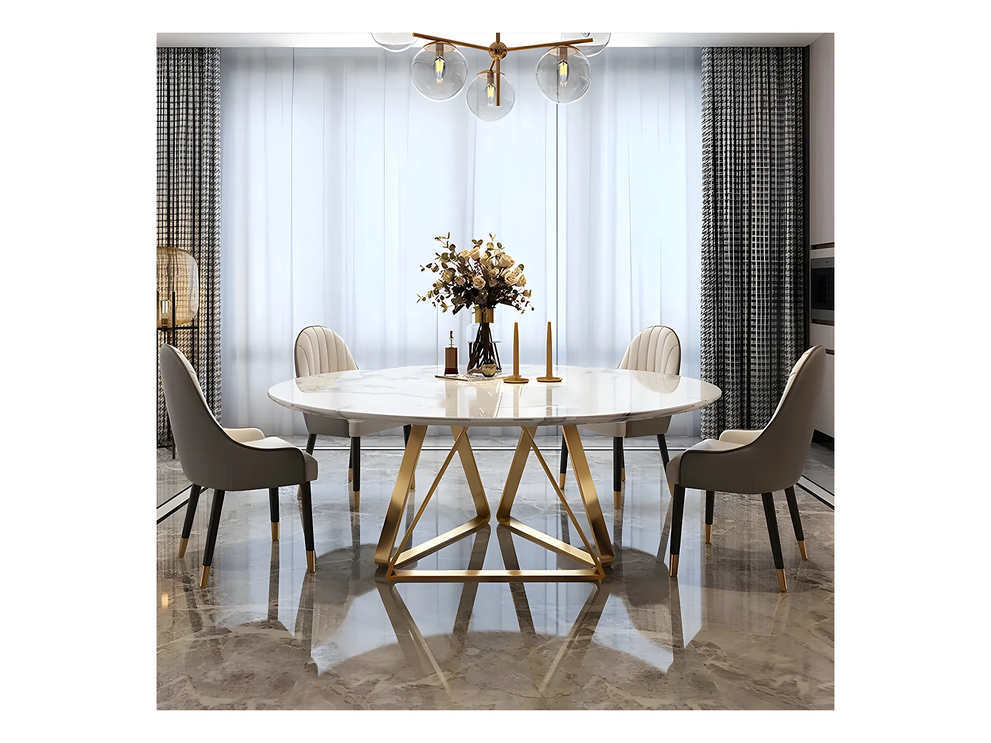 Table De Salle À Manger Ronde Moderne Effet Marbre Blanc Et Pied Doré Dorone