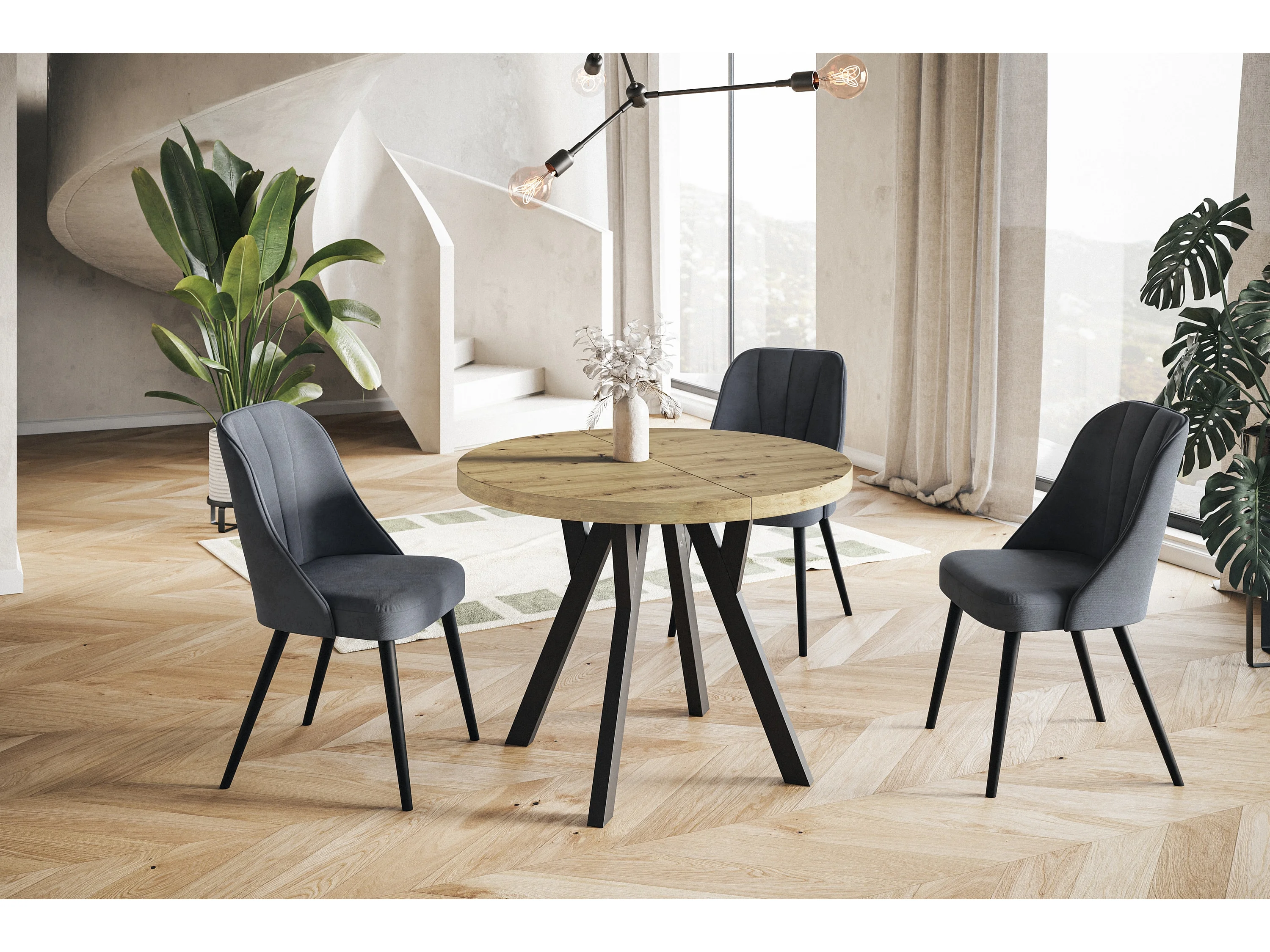 Table de salle à manger ronde OVO, table à rallonges Diamètre : 110 cm à 210 cm, couleur de la table basse : ARTISAN, avec pieds en bois de couleur noire