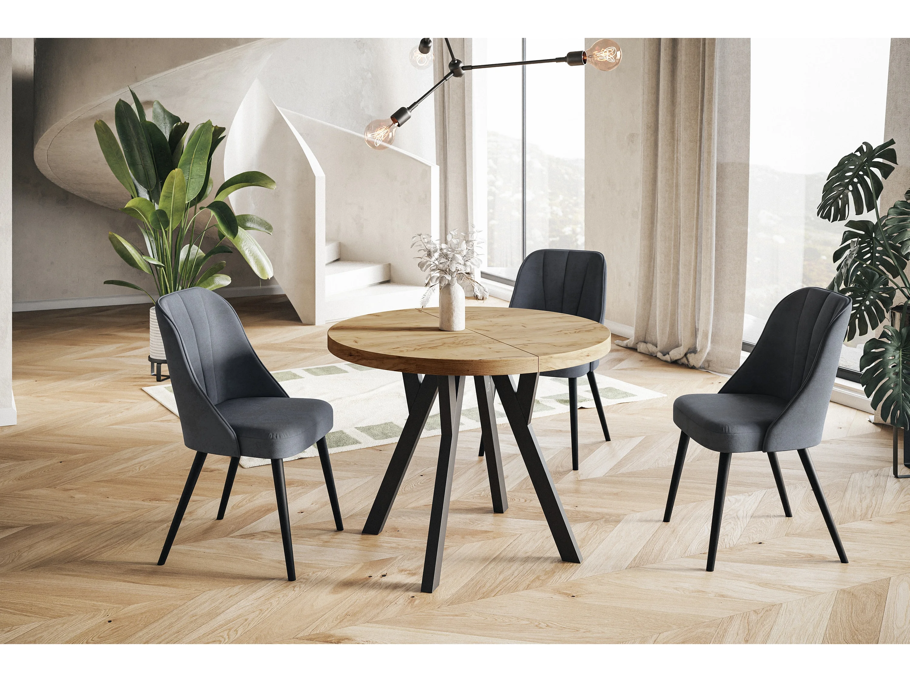 Table de salle à manger ronde OVO, table à rallonges Diamètre : 110 cm à 210 cm, couleur de la table basse : CRAFT, avec pieds en bois de couleur noire